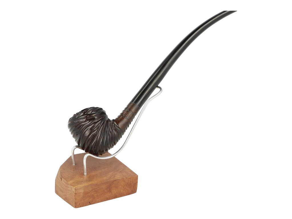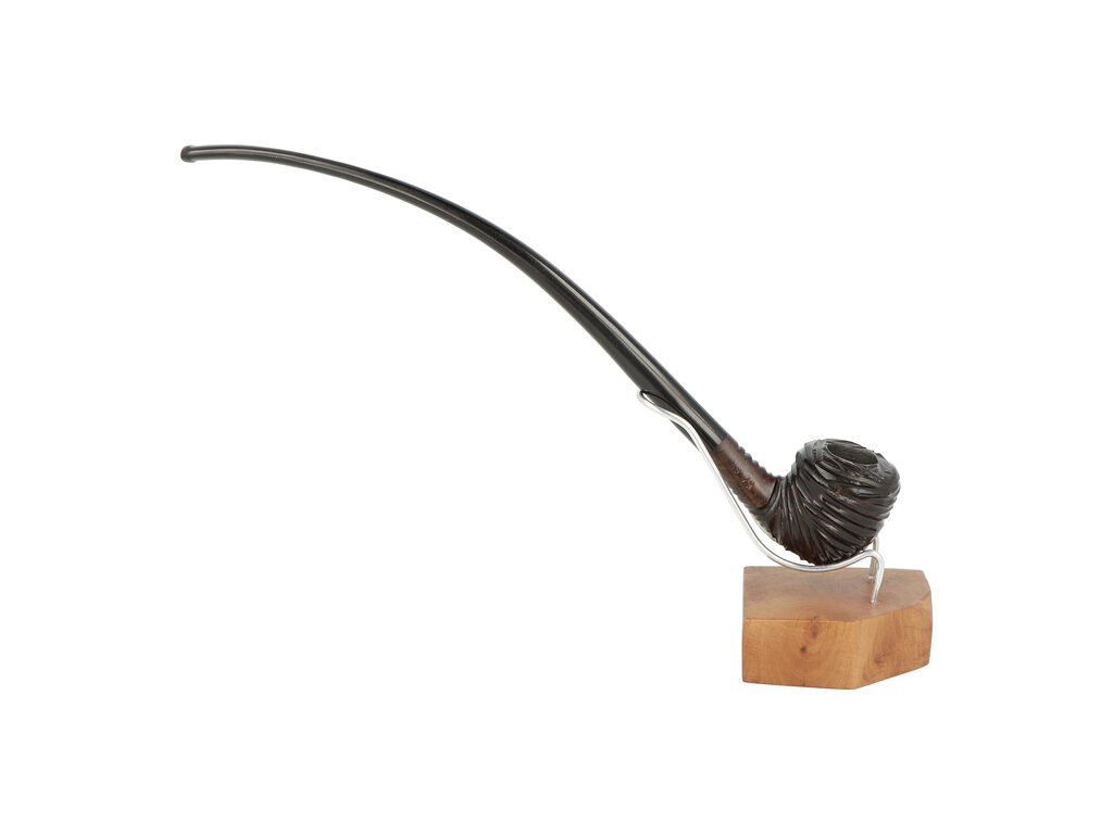 Prohnutá dlouhá tzv. televizní dýmka BPK s chladičem je ve tmavém hnědém provedení s méně výraznou kresbou. Na boku je dýmka zdobená rytým nápisem "Since BPK 1842. Hrubší hlava dýmky je pololesklá, dlouhý akrylátový náustek lesklý.