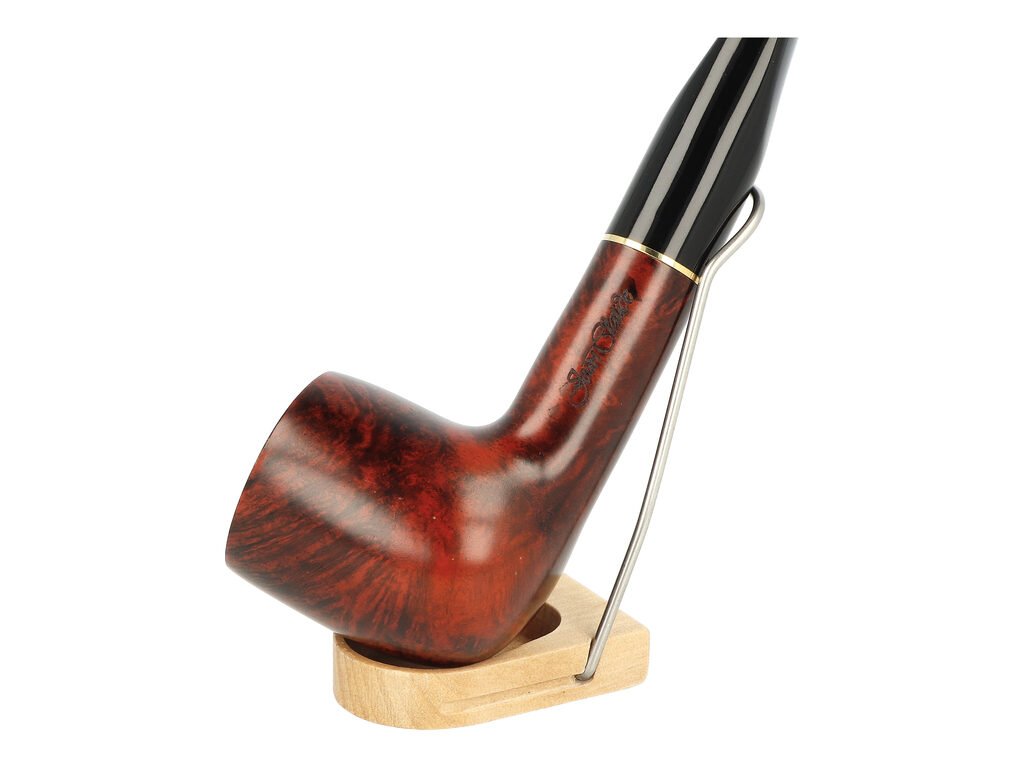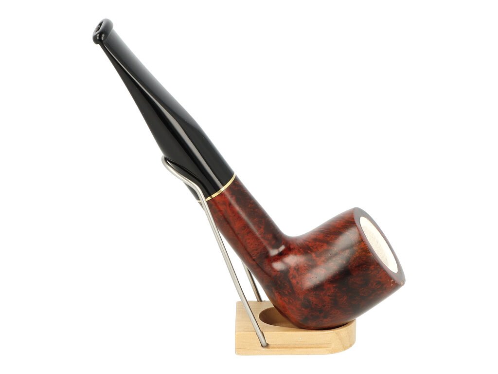 Dýmka s vložkou z mořské pěny a filtrem 9 mm. Briérová dýmka Jean Claude Meerschaum je precizně vyrobená z jakostního briérového dřeva. Meršánová vložka uvnitř hlavy zajišťuje dýmce větší odolnost vůči žáru a díky tomu dehtový roztok (odpadní produkt vznikající při hoření tabáku) v dýmce rychleji vysychá. Mezi troubelem a náustkem je vložený okrasný kovový kroužek. Součástí dodávky dýmky není filtr. Dýmka je dodávaná v látkovém sáčku. Vyobrazený stojánek není součástí balení dýmky.
