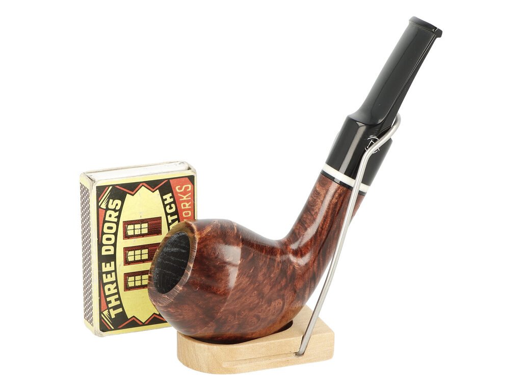 Precizně zpracovaná brierová dýmka od známého výrobce dýmek Oldřicha Jirsy je kvalitně vyrobená z pečlivě vybraného briarového dřeva. Mírně prohnutá dýmka je ve tmavším hnědém odstínu s výraznější kresbou. Hladká hlava dýmky je v lesklém provedení, černý akrylátový náustek taktéž.