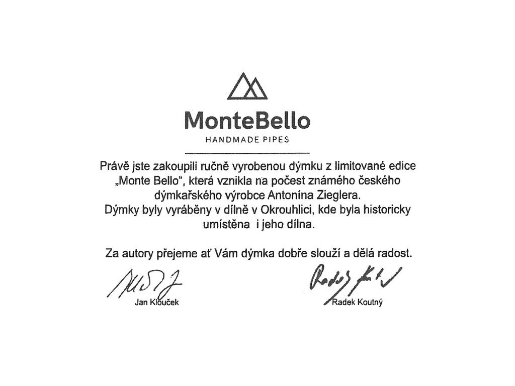 Na ruční výrobu dýmek Monte Bello jsou použité výběrové kusy briaru ze Španělska a kvalitní akrylátové náustky z Cumberlandu. Dýmku dodáváme v sametovém stahovacím sáčku a originální dárkové krabičce. Součástí dodávky není filtr.