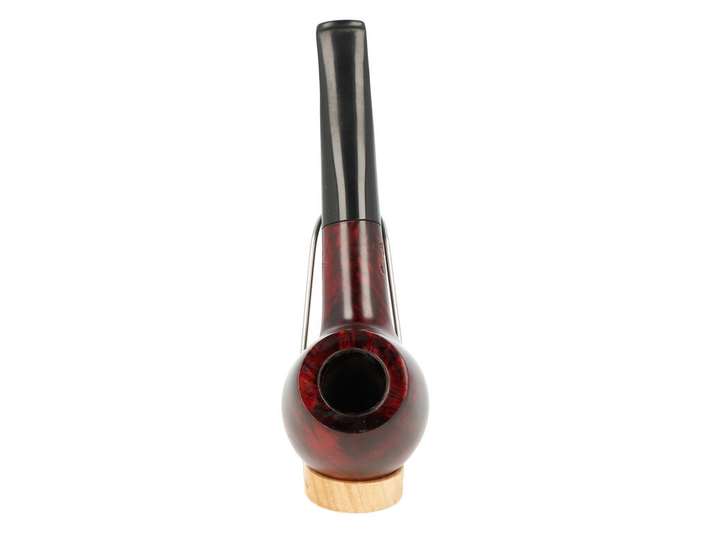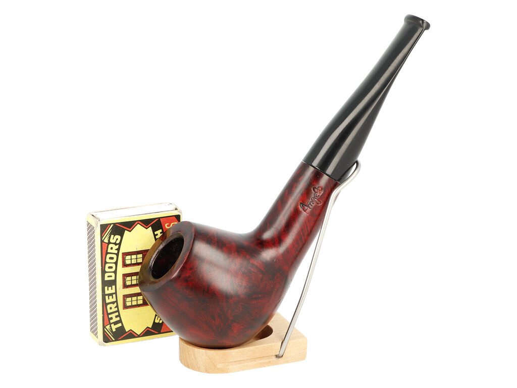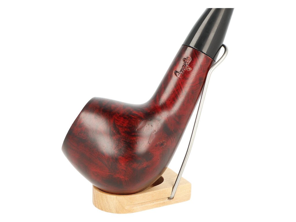 Rovná dýmka Angelo je ve tmavém hnědo oranžovém provedení s jemnou kresbou. Na boční straně dýmky najdeme rytý nápis "Angelo". Hladká hlava dýmky je lesklá, černý akrylátový náustek taktéž.