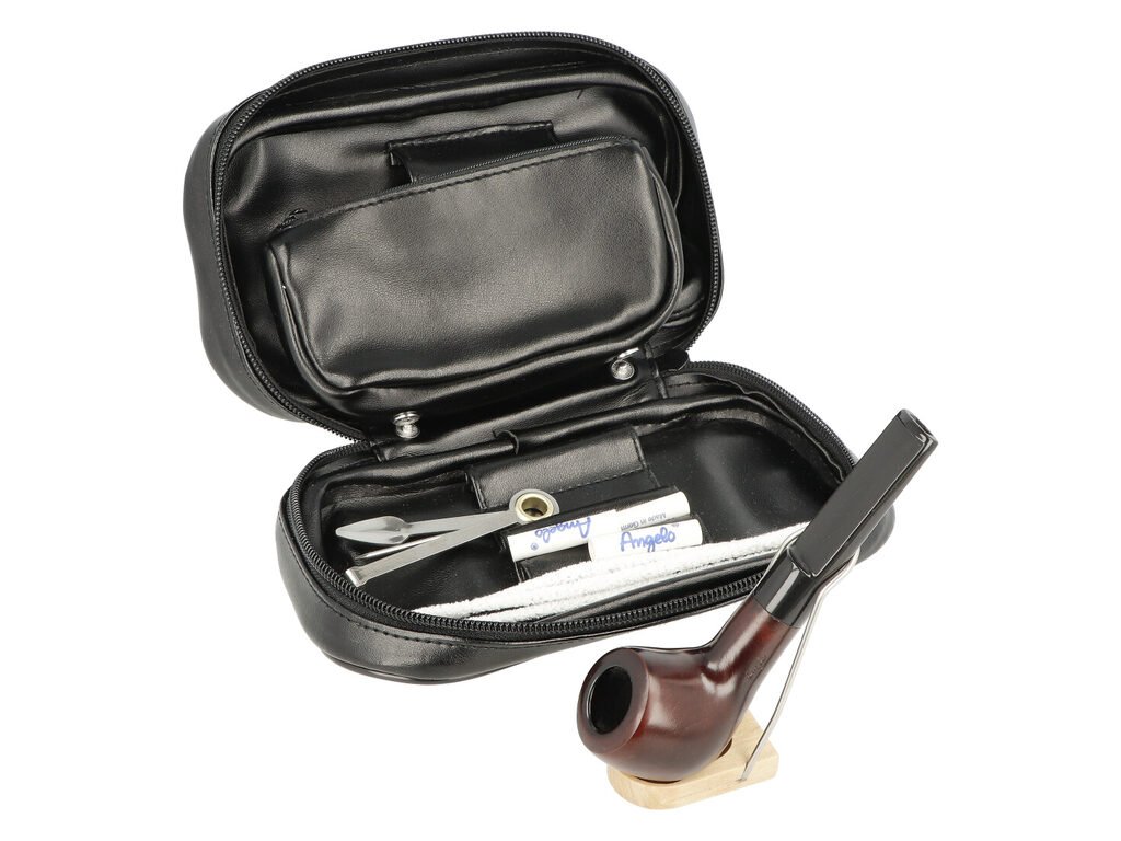 Praktická sada pro kuřáky dýmky - startovací set. Dýmková sada obsahuje rovnou briárovou dýmku Angelo s filtrem 9 mm, černé koženkové pouzdro na dýmku se zipem, nerezové ťapťátko, dýmkové filtry a čističe dýmky. Dárková sada je vhodná jako dárek pro začínajícího kuřáka dýmky, kterým jistě uděláte radost. Zobrazený stojánek není součástí balení dýmky.