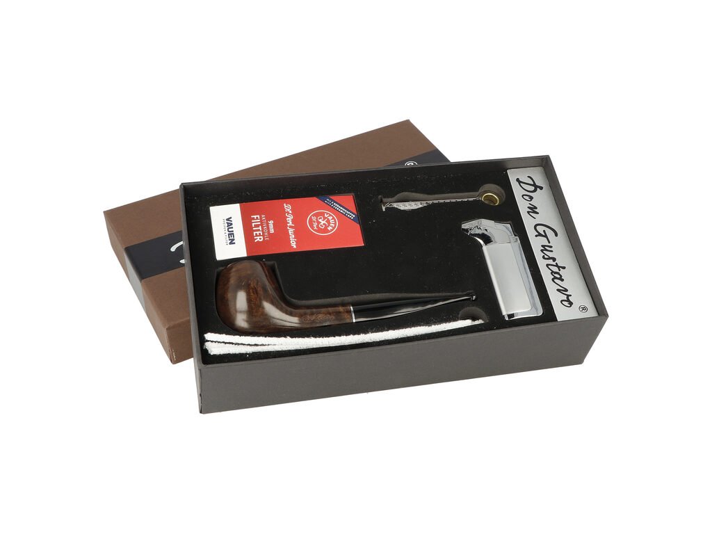 Sada pro kuřáky dýmky. Dýmková sada obsahuje bruyerovou dýmku s filtrem, ťapťátko, dýmkové filtry, čističe dýmky a dýmkový zapalovač. Provedení: hnědé.