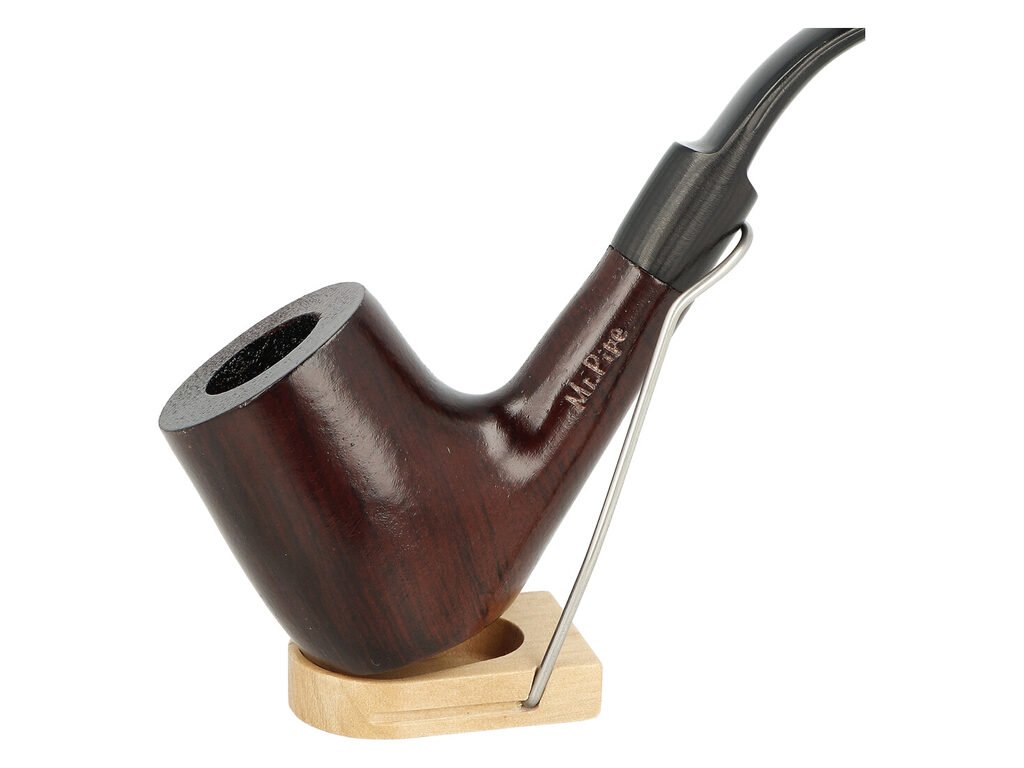 Zahnutá dýmka je ve tmavě hnědém odstínu s jemnou kresbou. Na boku najdeme rytý nápis "Mr. Pipe". Hlava dýmky je pololesklá, černý náustek lesklý.