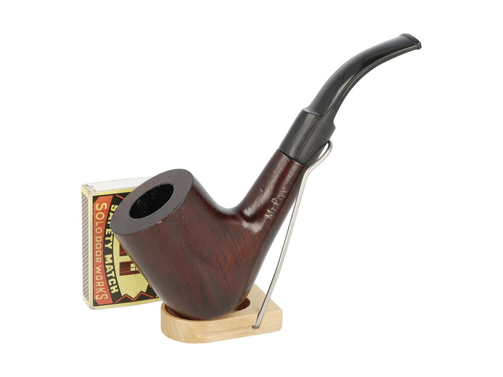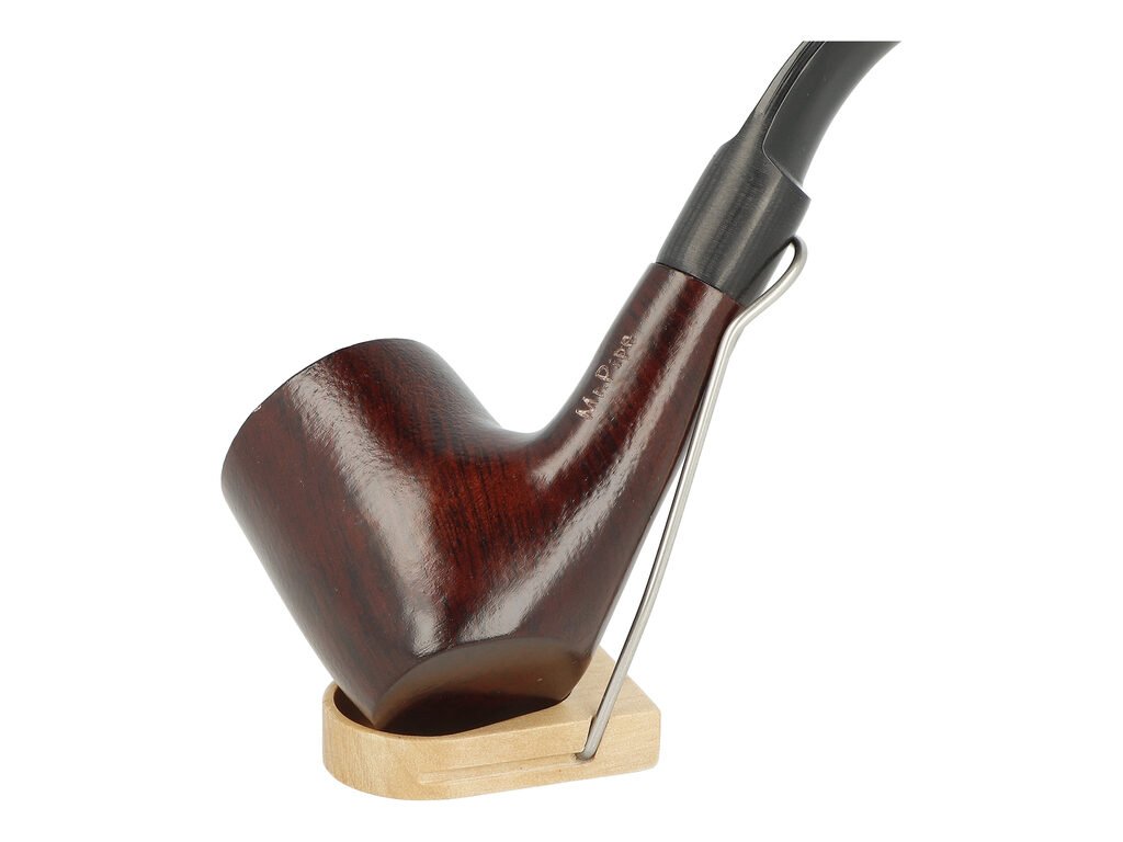 Zahnutá dýmka je ve tmavě hnědém odstínu s jemnou kresbou. Na boku najdeme rytý nápis "Mr. Pipe". Hlava dýmky je pololesklá, černý náustek lesklý.