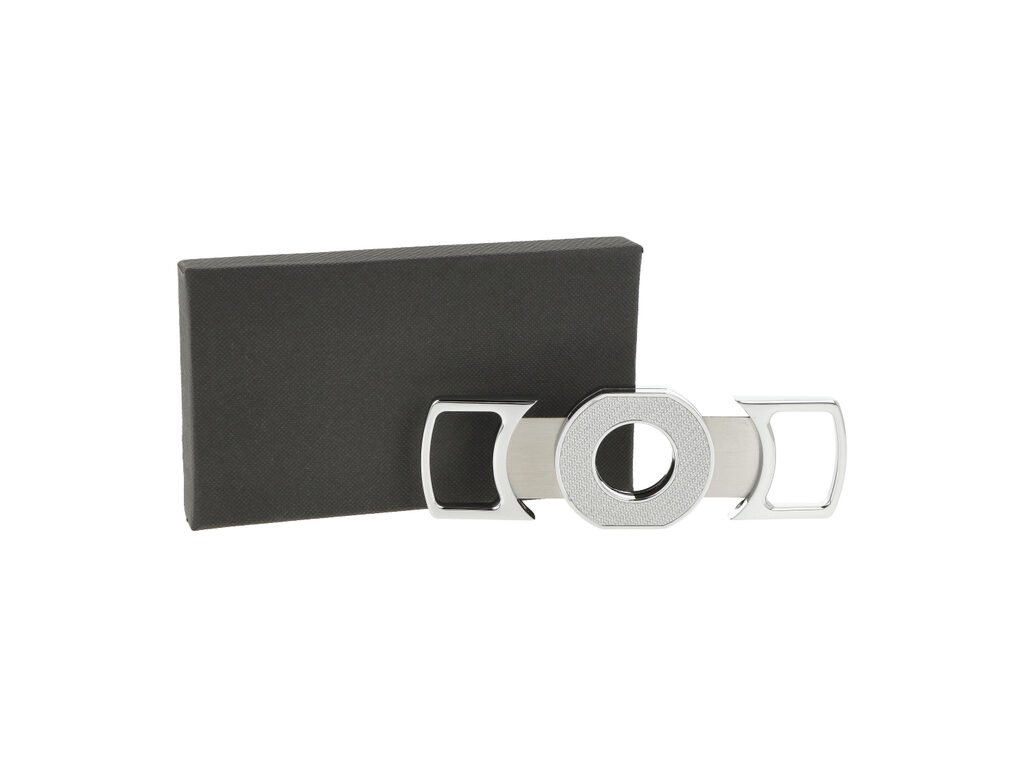 Dvoubřitý doutníkový ořezávač Power. Elegantní kovový ořezávač na doutníky má povrch v lesklém chromovém provedení. Ostré břity vyrobené z kvalitní oceli zajistí rychlý a čistý ořez vašeho doutníku. Doutníkový ořezávač je dodávaný v dárkové krabičce.