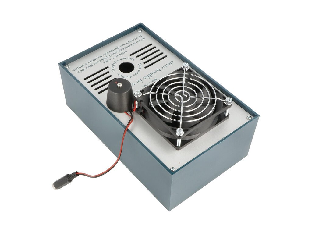 Doutníky díky výborné cirkulaci vlhkosti není nutné otáčet, jelikož jsou rovnoměrně provlhčené. Rotující kulička nás také upozorní, když dojde voda. Jednoduše je její rotace hlučná a Vy víte, že máte v zásobníku doplnit destilovanou vodu. Zvlhčovač je připojen k hygrostatu, který automaticky udržuje Vámi nastavenou požadovanou vlhkost v humidoru. Zvlhčovací jednotka s ventilátorem, hygrostat a síťový napájecí zdroj jsou mezi sebou propojené kabelem s konektory. O napájení zvlhčovače se stará externí elektrický adaptér 12 V.