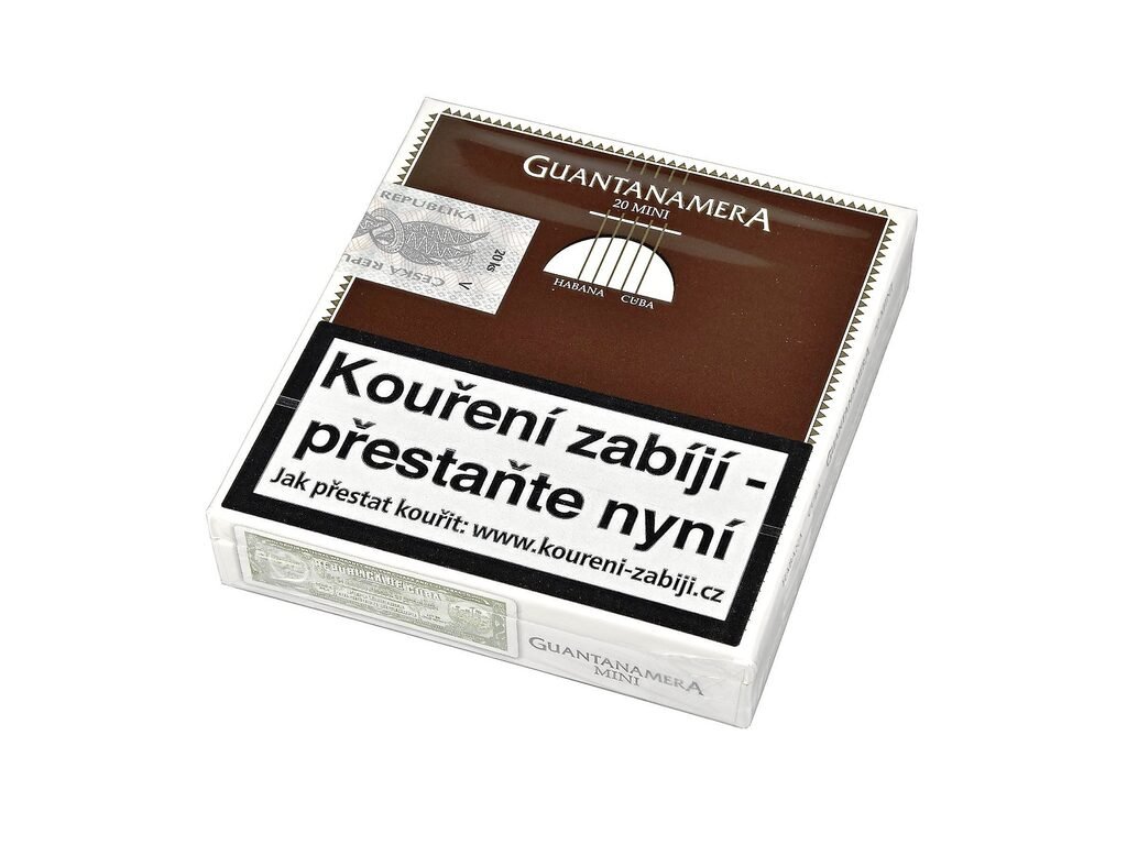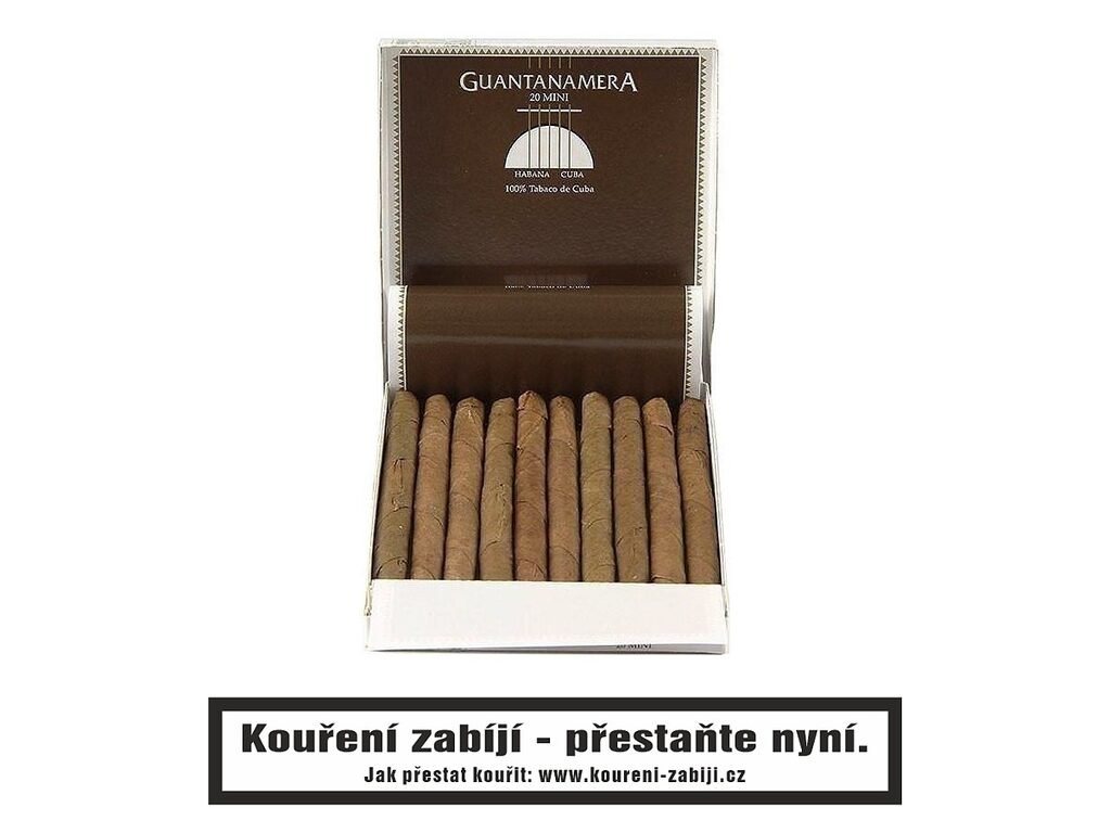Kubánské doutníky Guantanamera Mini. Malé suché doutníčky s lehkou příjemnou chutí a vůní jsou ideální pro krátké pokouření. Doutníky Guantanamera jsou strojově vyráběné z kvalitních tabákových listů ze známých tabákových plantáží v oblasti Vuelta Arriba. Malé kubánské doutníky jinak také cigarillos charakterizuje lehká tabáková chuť. Doutník hoří cca 15 minut. Doutníky Guantanamera Mini jsou balené po 20 ks a dodávány v papírové krabičce. Prodávají se pouze po celém balení.