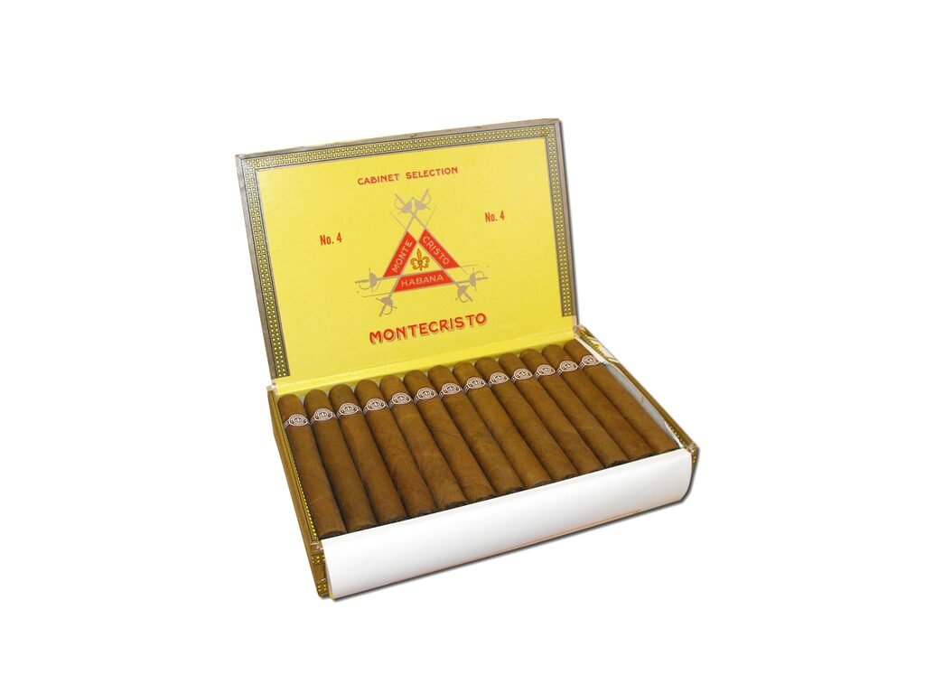Kubánské doutníky Montecristo No 4. Kvalitní ručně balené doutníky No 4 jsou oblíbené nejen kvůli své skvělé konstrukci, ale především díky výborné chuti a vůni. Po zapálení doutníku ucítíte jemně dřevnatou chuť, která se postupně změní na chutě kořeněné a tabákové. Doba hoření je cca 45-60 minut. Doutníky Montecristo patří mezi jedny z nejprodávanějších kubánských doutníků na světě díky jejich kvalitě a výborné chuti. Charakteristická je jejich výrazná středně silná až silná chuť a zapamatovatelná krabice s motivem známého románu Hrabě Monte Christo. Doutníky Montecristo No 4 jsou balené po 25 ks v originální cedrové krabici s logem Montecristo a prodávají se pouze po celém balení.
