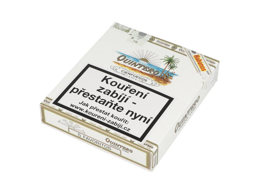 Kubánské doutníky Quintero Favoritos. Doutníky ve formátu kratšího Robusta jsou pro značku Quintero docela nezvyklé. Favoritos jsou balené z tabáku typu medium filler (z kusů tabákových listů). Díky tomuto jsou cenově dostupné a současně neztrácejí na své kvalitě a výborné chuti. Jsou charakteristické svojí lehkou zemitou chutí s tóny kůže, čokolády a zrnky pražené kávy. Doutníky jsou balené po 5 ks v papírové originální krabičce a prodávají se pouze po celém balení.