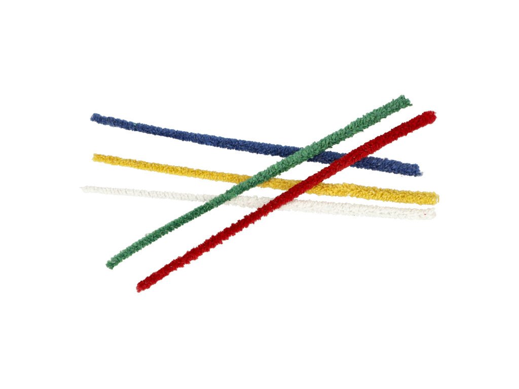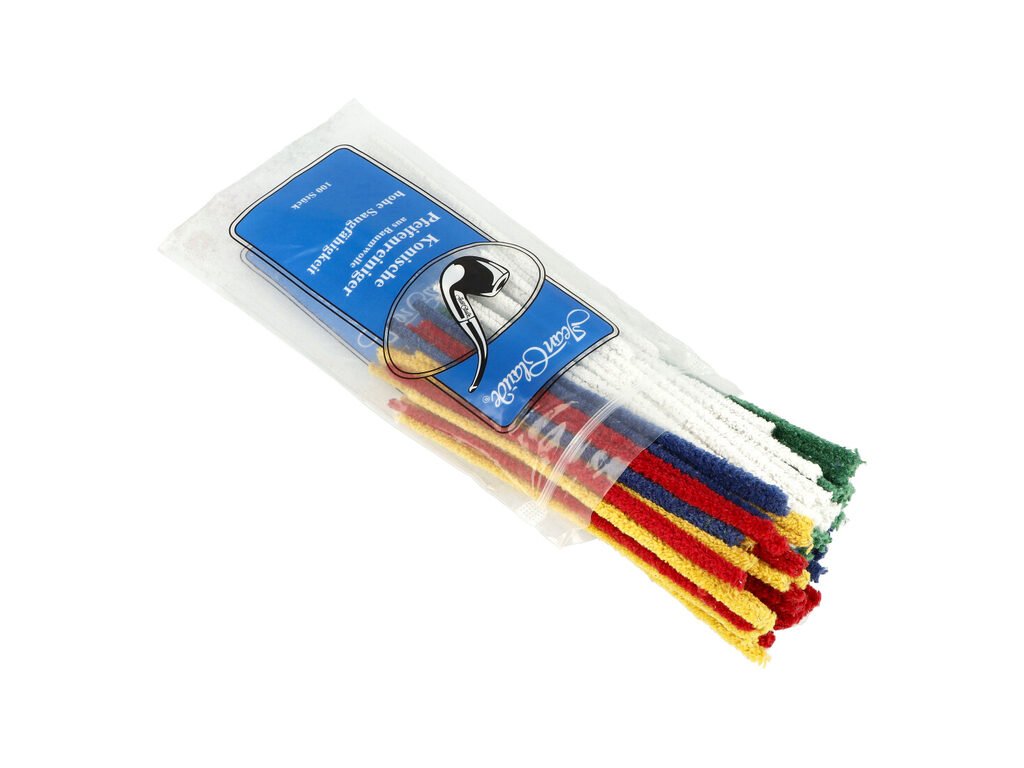 Barevné dýmkové čističe Jean Claude. Jemné kónické čističe z bavlněného vlákna a drátu mají každou stranu jinak silnou. Díky tomuto dobře vyčistíte nejen náustek, ale také kanálek v troubeli až po hlavičku. Nezbytná pomůcka pro údržbu a čištění vaší dýmky.