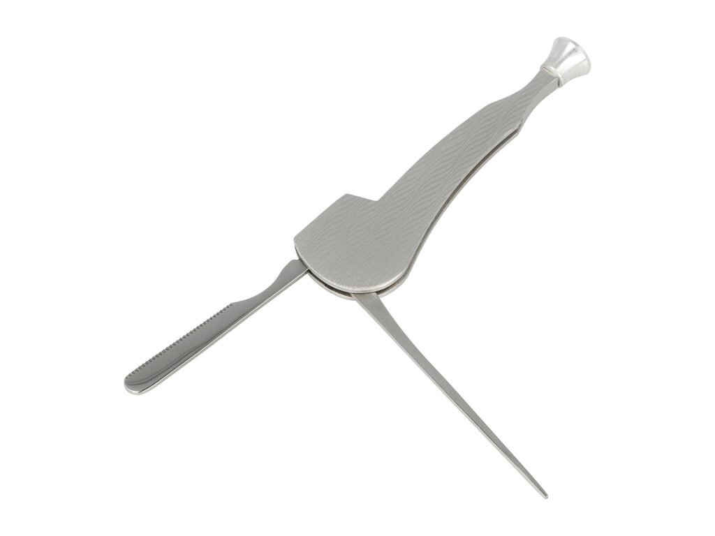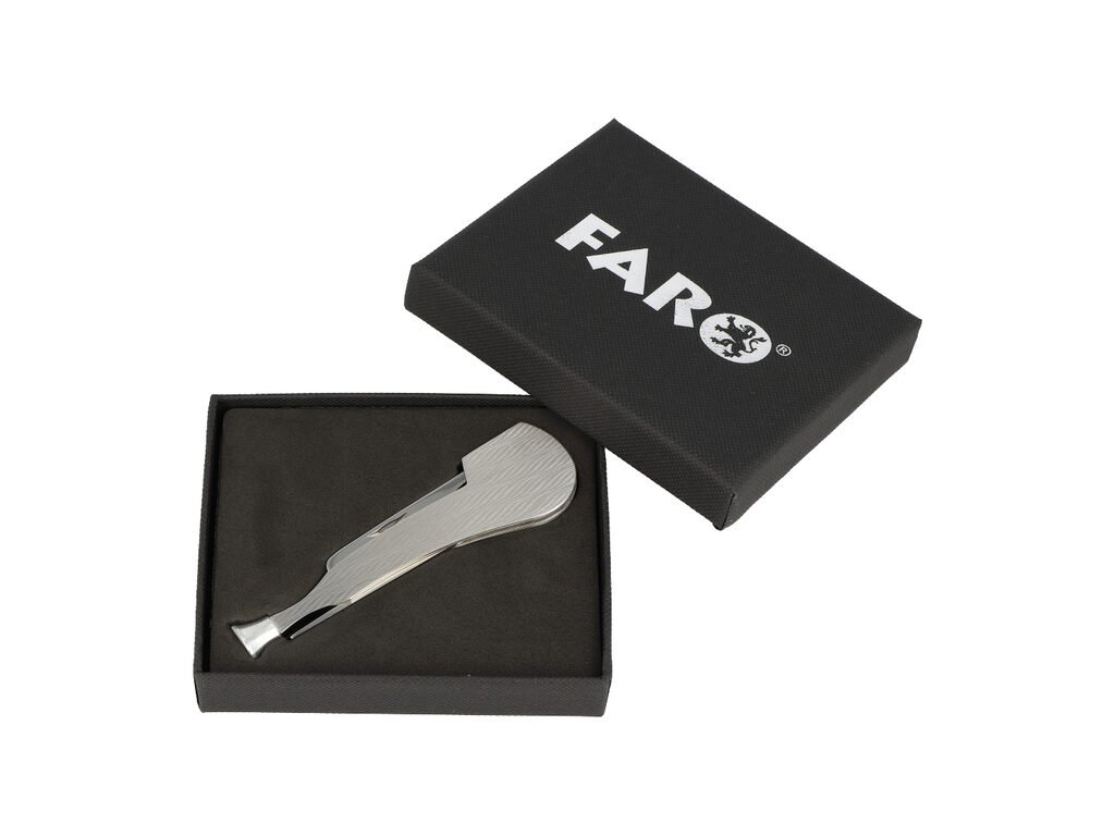 Kovové dusátko do dýmky. Třídílné dýmkové Faro s celokovovým povrchem v matném chromu je vyrobené z nerezu. Povrch je zdobený jemnou texturou. Dýmkový nůž, trn a dusátko jsou v leštěném provedení. Praktická pomůcka, kterou kuřák dýmky každodenně potřebuje k pěchování tabáku do dýmky, důkladnému vyčištění a údržbě dýmky. Dodáváme v dárkové krabičce.