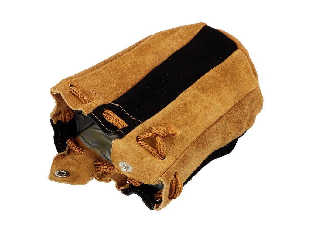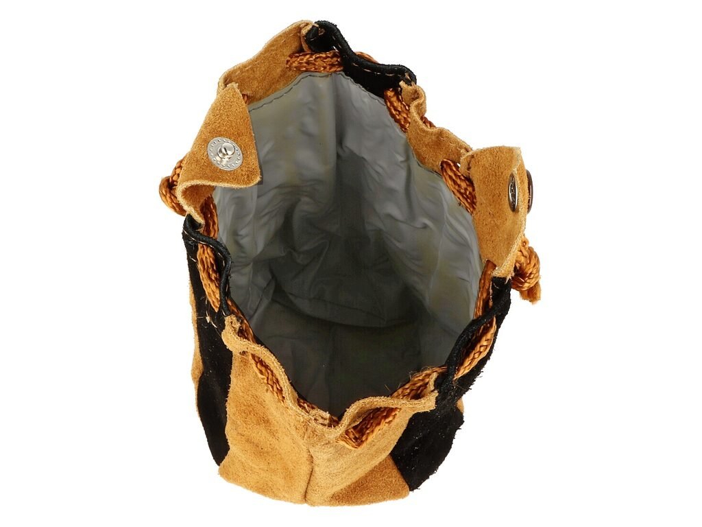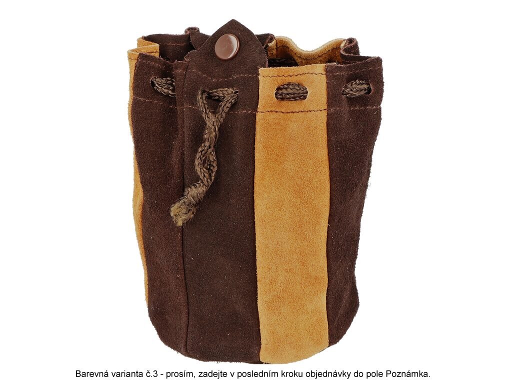 Kožený pytlík na tabák se syntetickou podšívkou. Prošívaný pytlík vyrobený z broušené kůže je ve hnědo černé kombinaci. Uzavření pytlíku zajišťuje stahovací šňůrka a patent. Vnitřek pytlíku je z jemného syntetického materiálu.