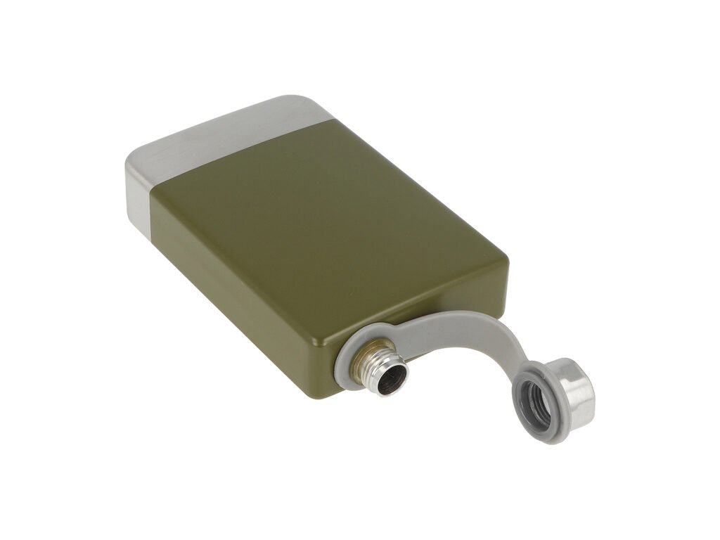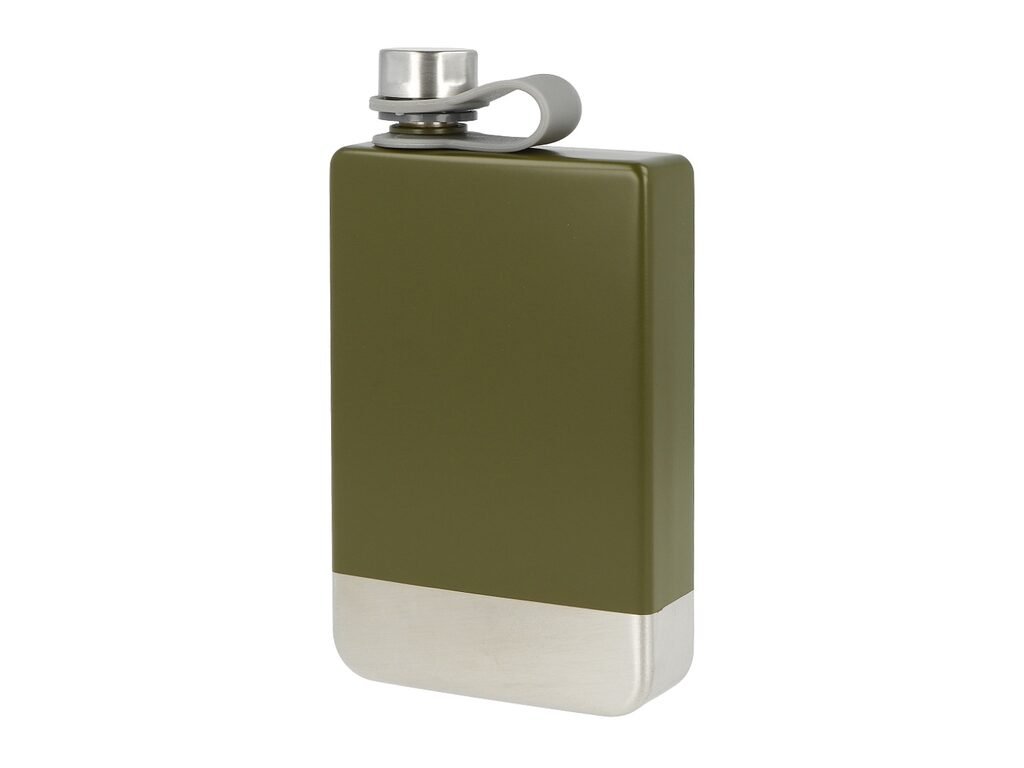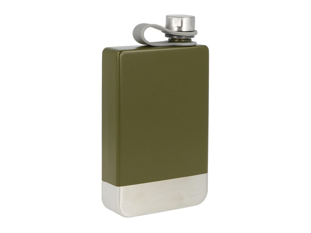 Nerezová placatka na alkohol Matte Army. Likérka v je vyrobená z nerezové oceli s jemně broušeným povrchem a matným lakováním ve tmavě zelené barvě. Likérka ve tvaru kanystru se zaoblenými rohy je vybavená šroubovacím uzávěrem a gumovým držákem víčka, který zabrání jeho ztrátě. Placatka je dodávaná v kartonové krabičce.