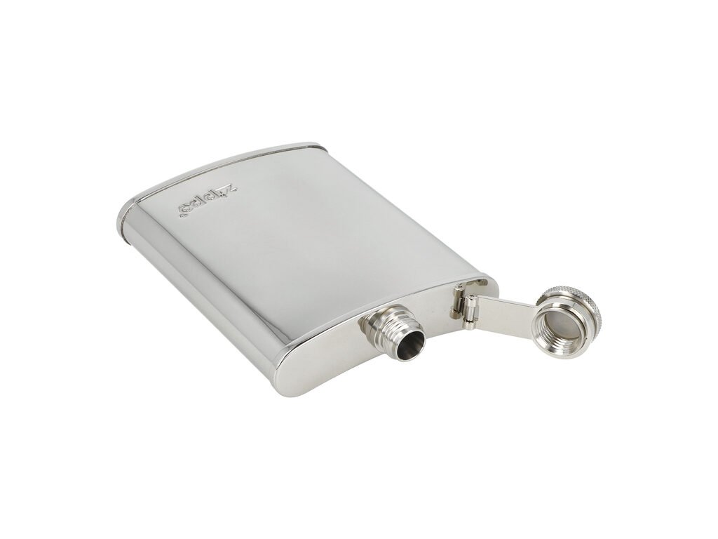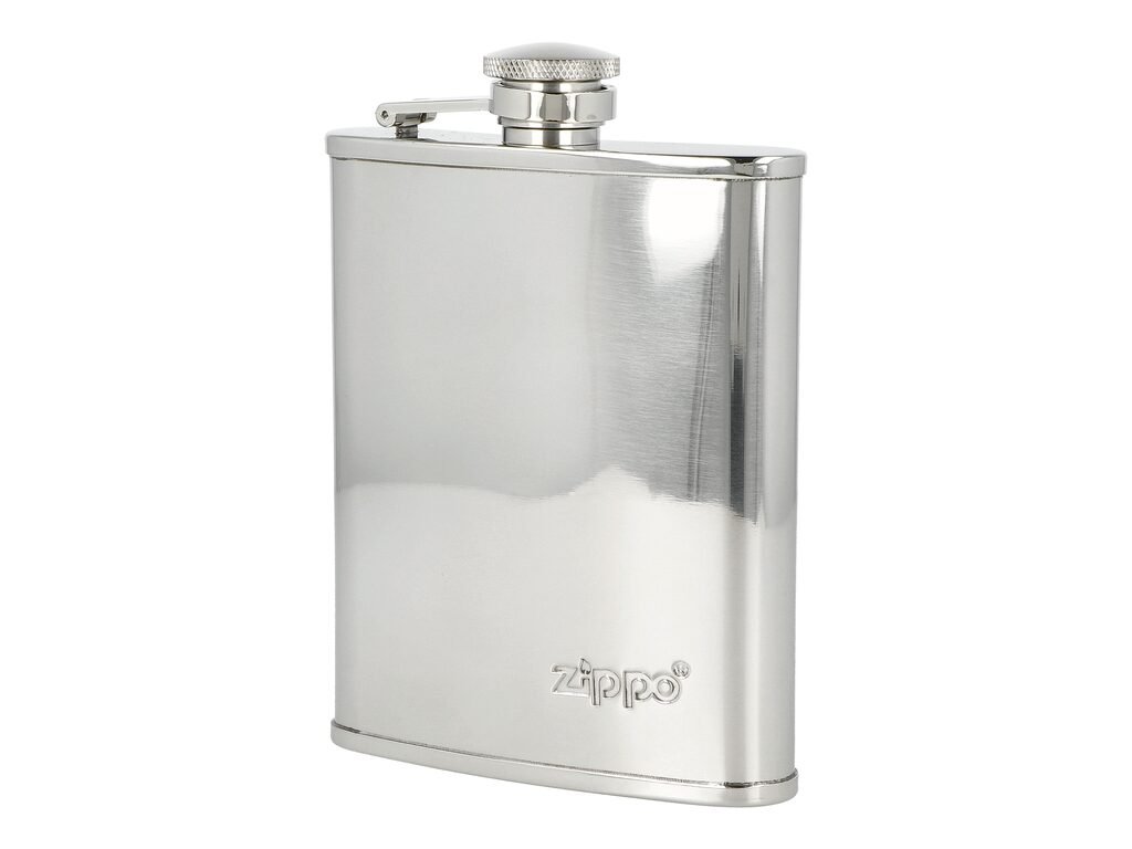 Originální nerezová placatka Zippo na alkohol. Kapesní likérka vyrobená z nerezové oceli má leštěný povrch. Čelní strana je zdobená logem Zippo. Likérka klasického prohnutého tvaru je vybavená šroubovacím uzávěrem a držákem víčka, který zabrání jeho ztrátě. Placatka je dodávaná v originální krabičce.