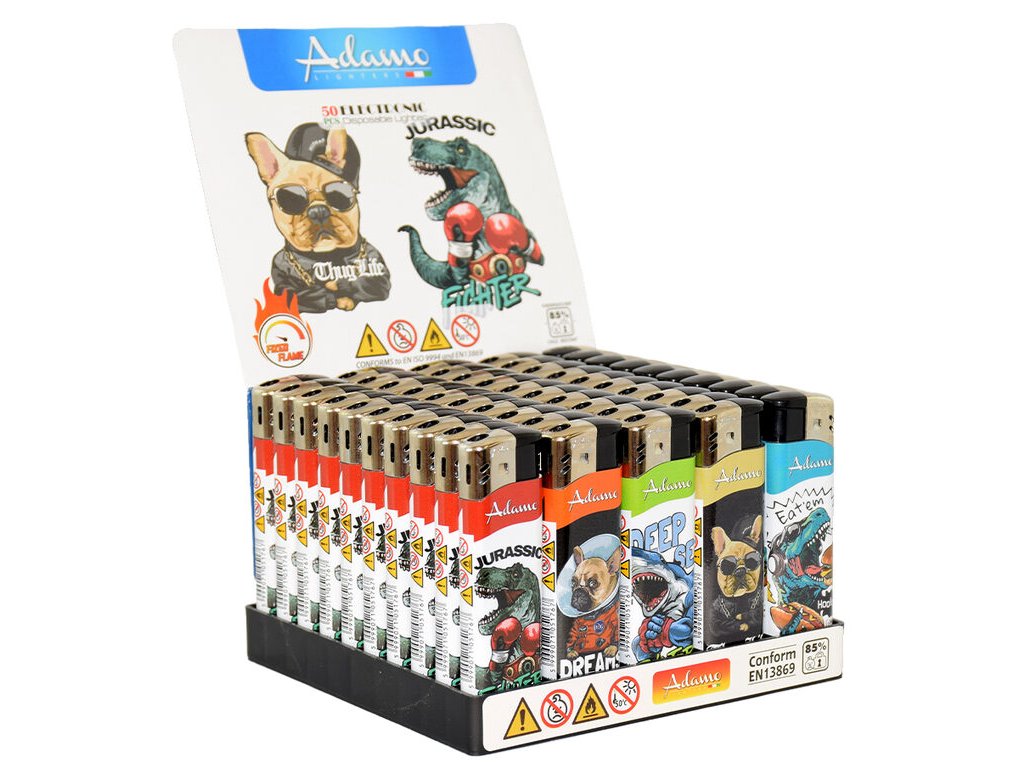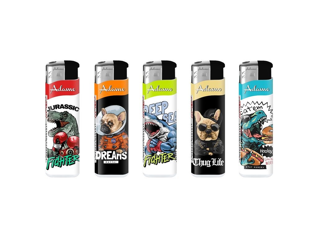 Plynový zapalovač Adamo Piezo Cool Animals. U zapalovače nelze měnit výšku plamene, zapalovač není plnící. Prodej pouze po celém balení (displej) 50 ks. Výška zapalovače 8 cm.