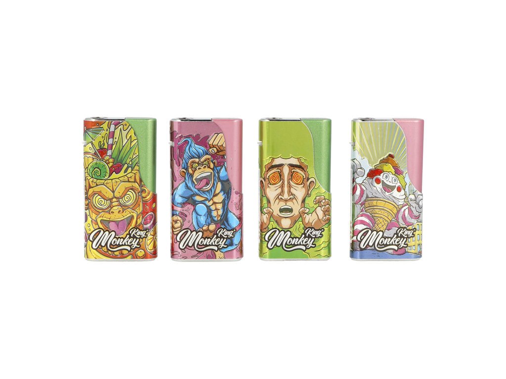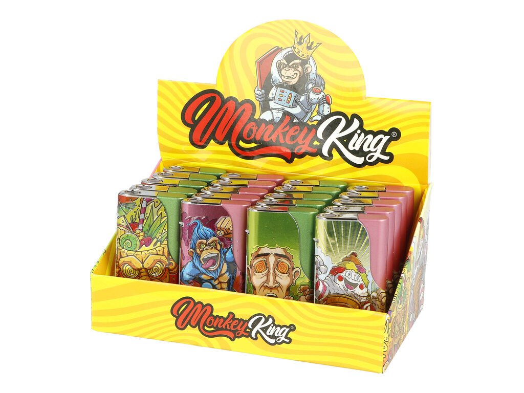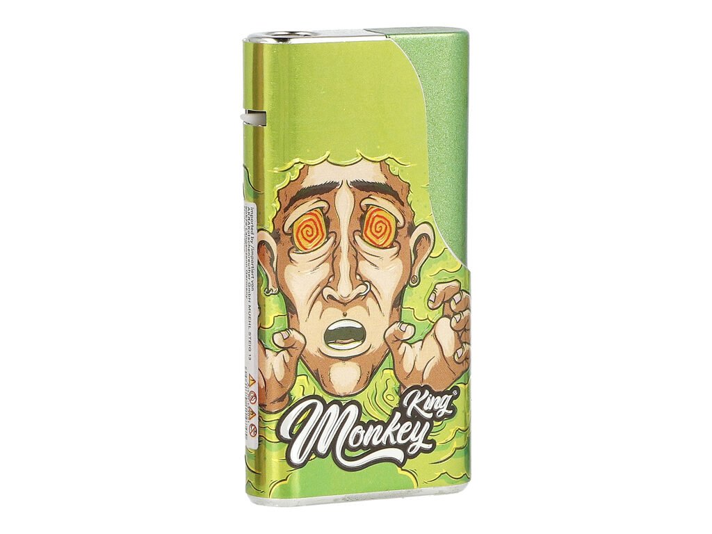 Tryskový zapalovač Monkey King. Plnitelný kovový turbo zapalovač s možností nastavení výšky plamene. Prodej pouze po celém balení (displej) 20 ks. Výška zapalovače 6,9 cm.