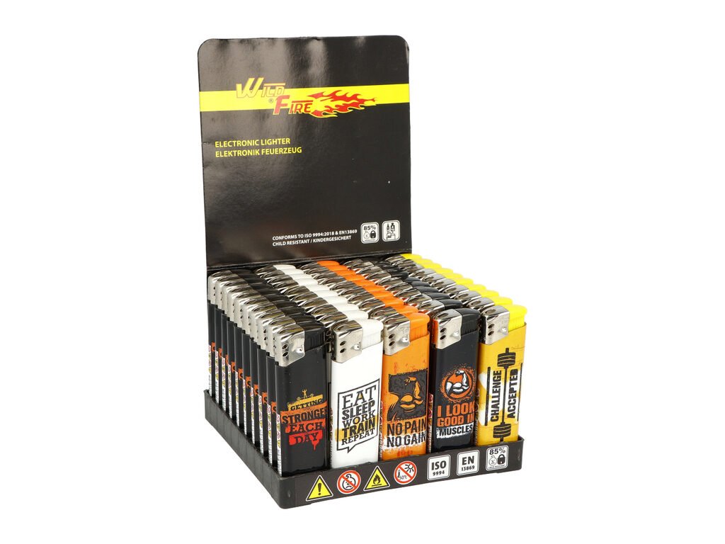 Plynový zapalovač Wildfire Piezo Training. Plnitelný zapalovač s možností nastavení výšky plamene. Prodej pouze po celém balení (displej) 50 ks. Výška zapalovače 8 cm.