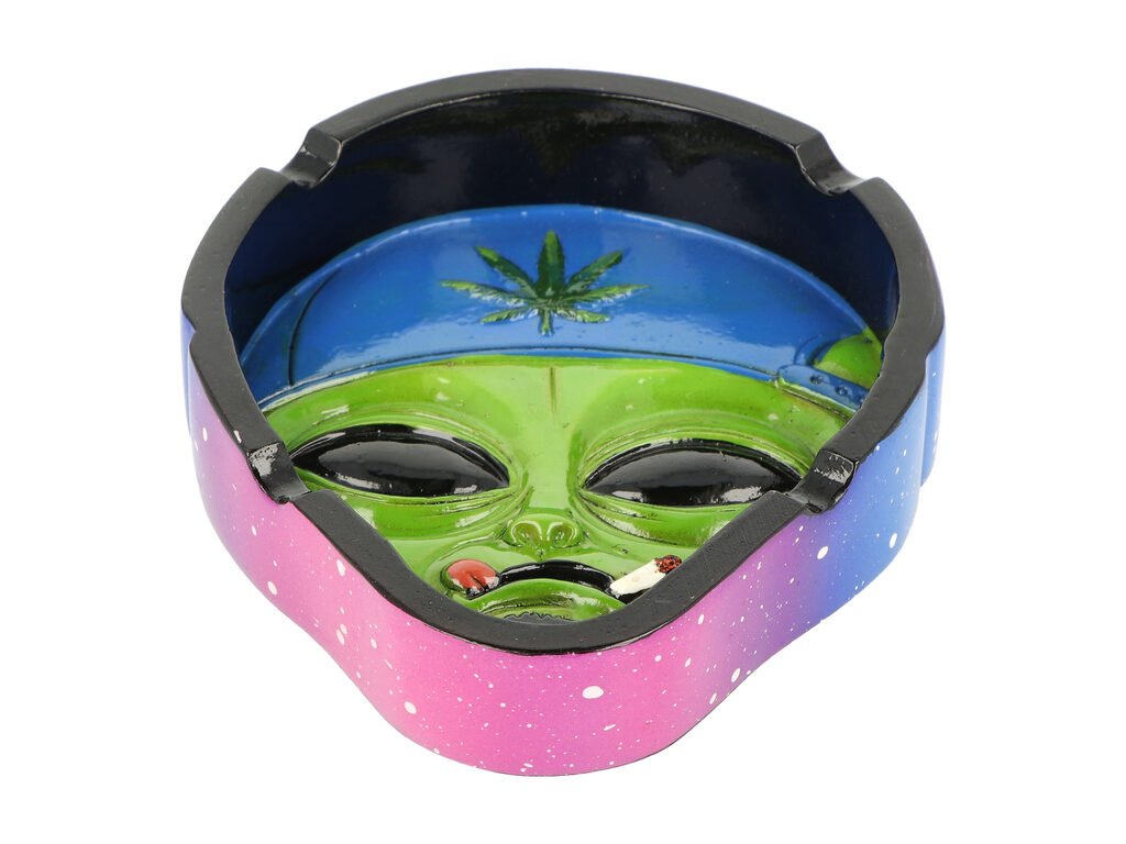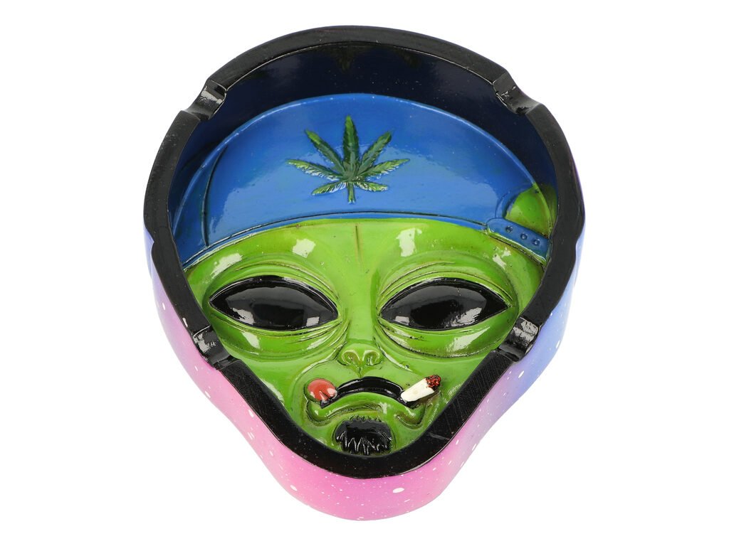 Venkovní cigaretový popelník Alien Urban. Polyresinový popelník na čtyři cigarety v designu Aliena je barevném provedení. Polyresin je druh pryskyřice, která je odolná vůči mechanickému poškození a vlivům počasí. Díky použitému materiálu je popelník vhodný nejen do interiéru, ale také současně pro venkovní použití. Jemná látka na spodní části popelníku zabraňuje poškození povrchu, na kterém popelník leží. Popelník je dodávaný v kartonové krabici.