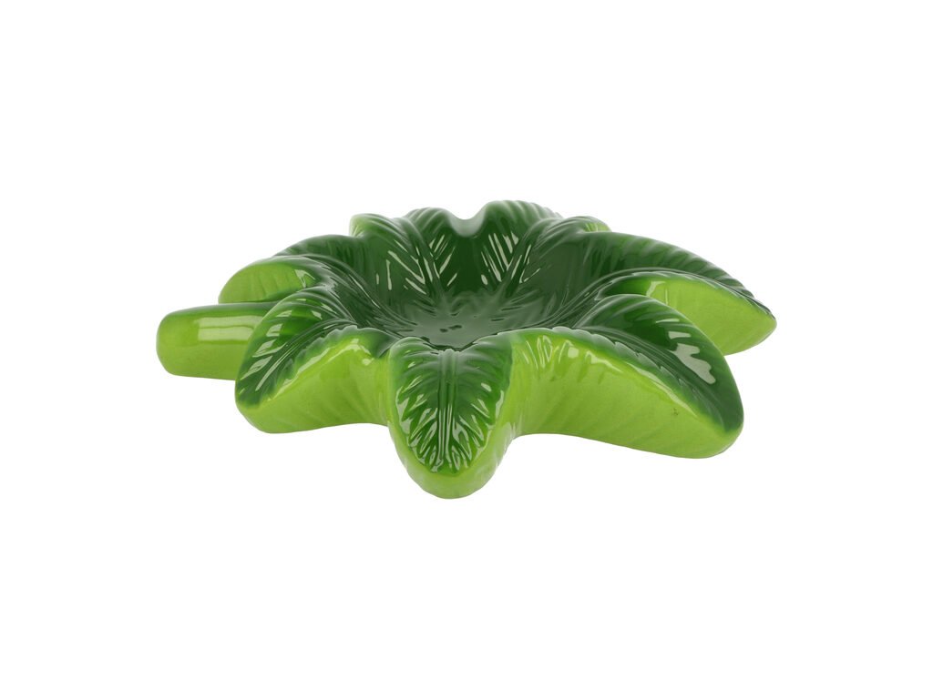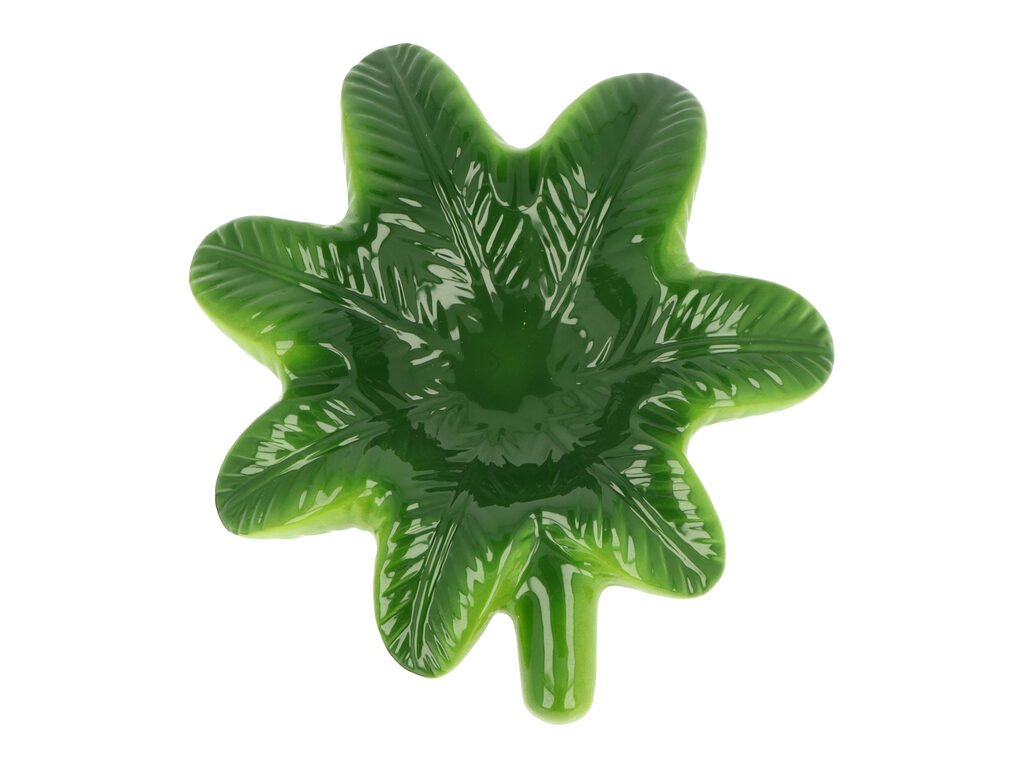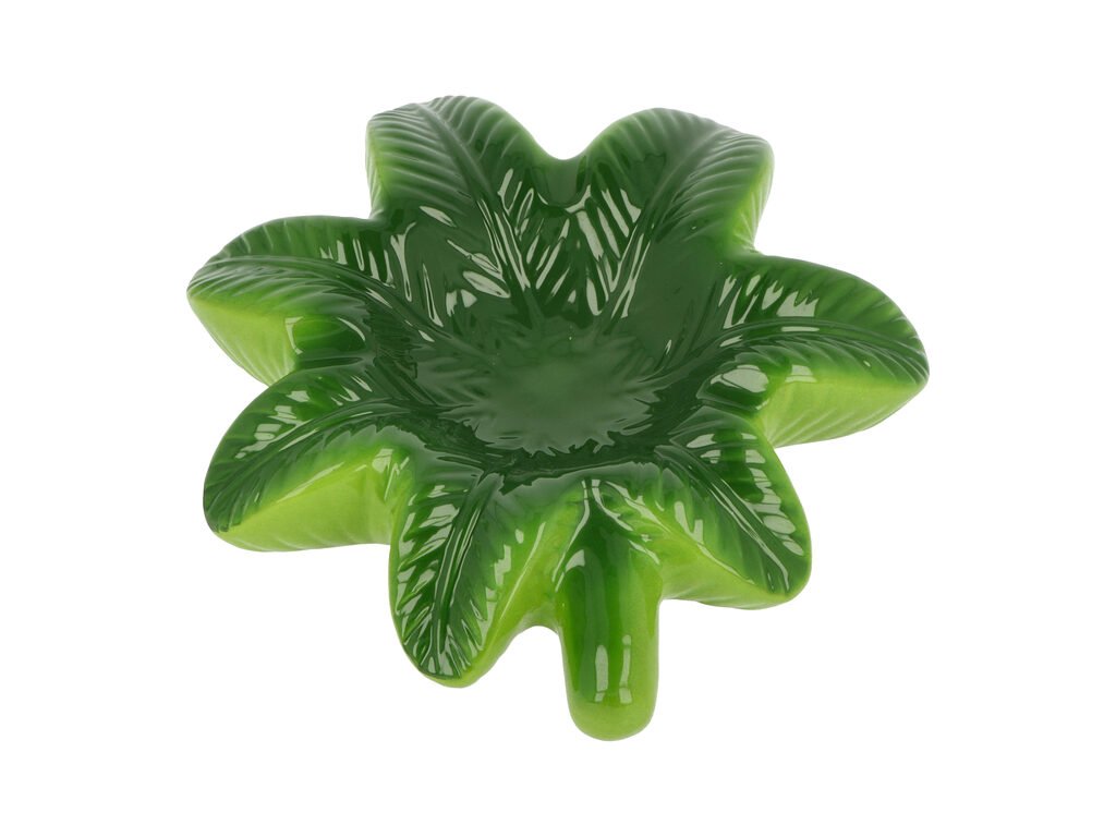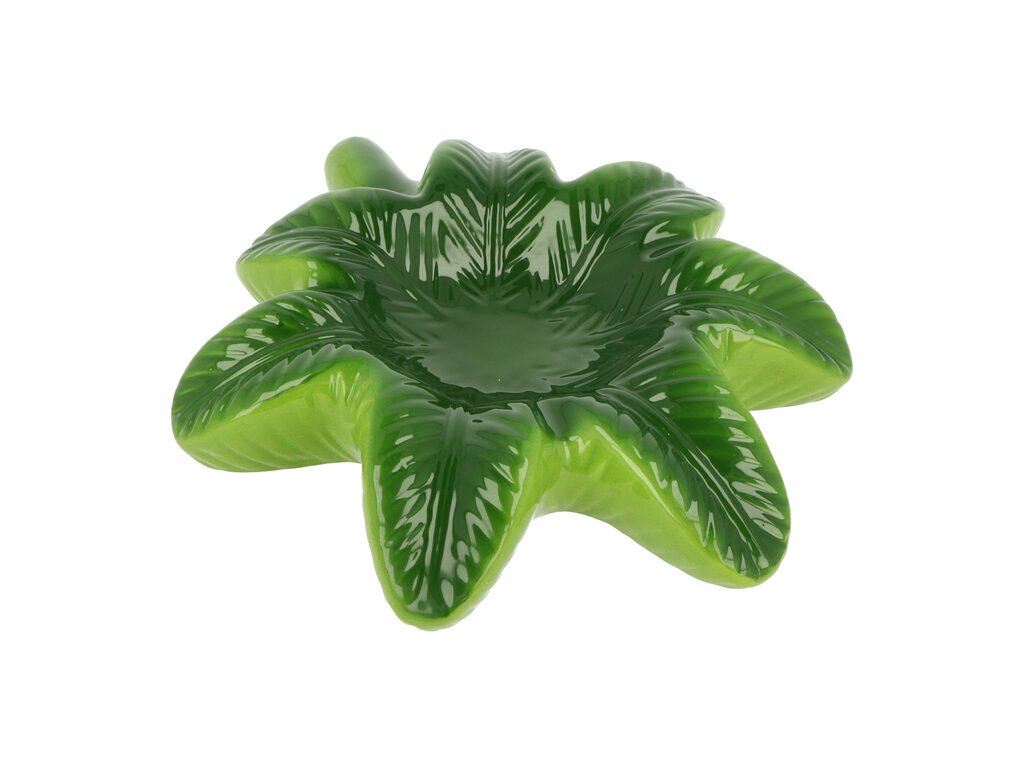 Cigaretový popelník Canabis je atraktivní keramický popelník ve tvaru listu konopí, který je ve dvou barevném zeleném provedení. Díky leskle glazurovanému povrchu se popelník bude lépe čistit. Popelník je vybavený odklady pro tři cigarety.