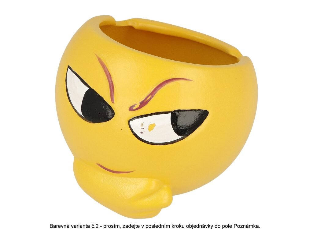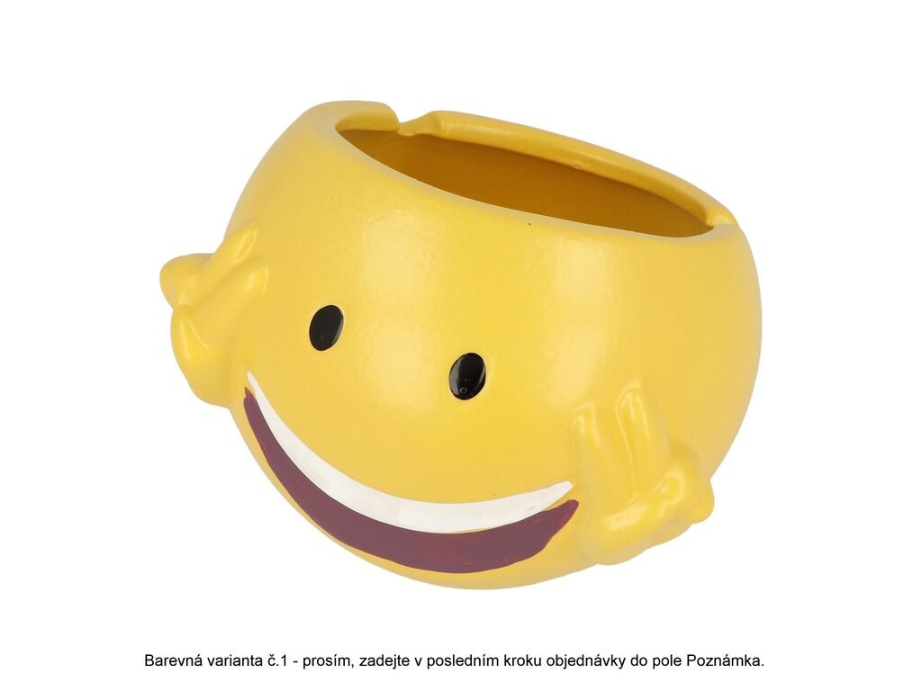 Cigaretový popelník Emoji. Keramický popelník ve žluté barvě s motivem emotikonů má matný hladký povrch. Otevřený popelník s dvěma místy pro cigaretu je vhodný spíše do uzavřených či více krytých prostorů, kde nehrozí přímé rozfoukání popelu větrem. Cena je uvedena za 1 ks. Před odesláním objednávky uveďte číslo barevného provedení do poznámky.