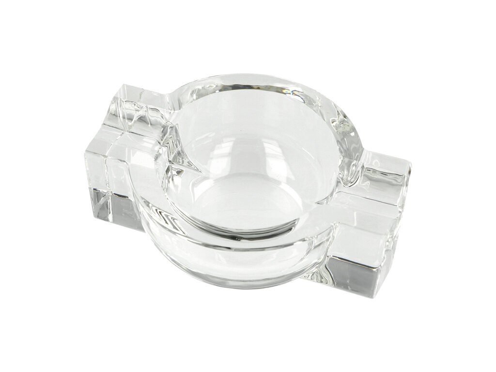 Skleněný doutníkový popelník na 2 doutníky. Čirý křišťálový v kulatém tvaru popelník je precizně vyrobený z kvalitního skla. Menší popelník na doutníky je vybavený dvěma odklady o šířce 2,2cm.