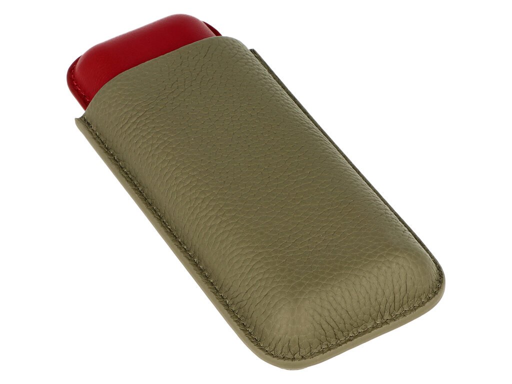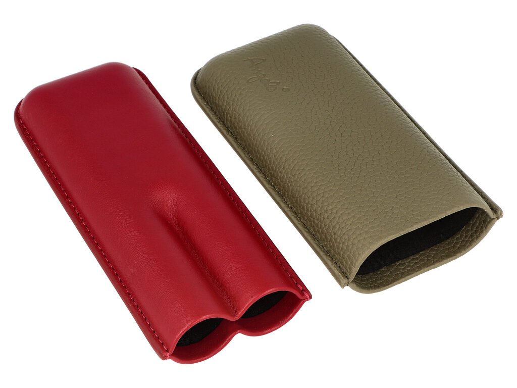 Koženkové pouzdro na dva doutníky ve dvoubarevném provedení. Doutníkové pouzdro Angelo vyrobené z kvalitní koženky má jemně texturovaný povrch. Pouzdro zdobené obšívkou a embosovaným logem pojme dva kusy doutníků o průměru 22 mm, které ochrání před poškozením. Pouzdro na doutníky je dodávané v kartonové krabičce.