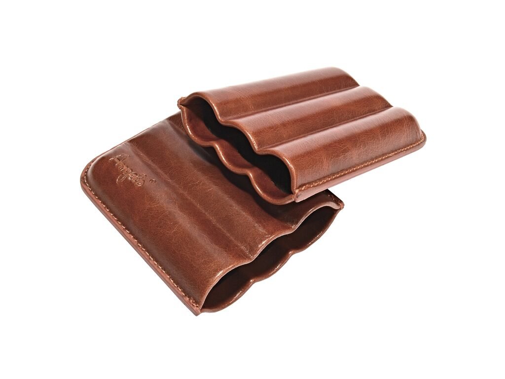 Pouzdro na 3 doutníky Etue Tridio, hnědé, kožené, 14 cm
