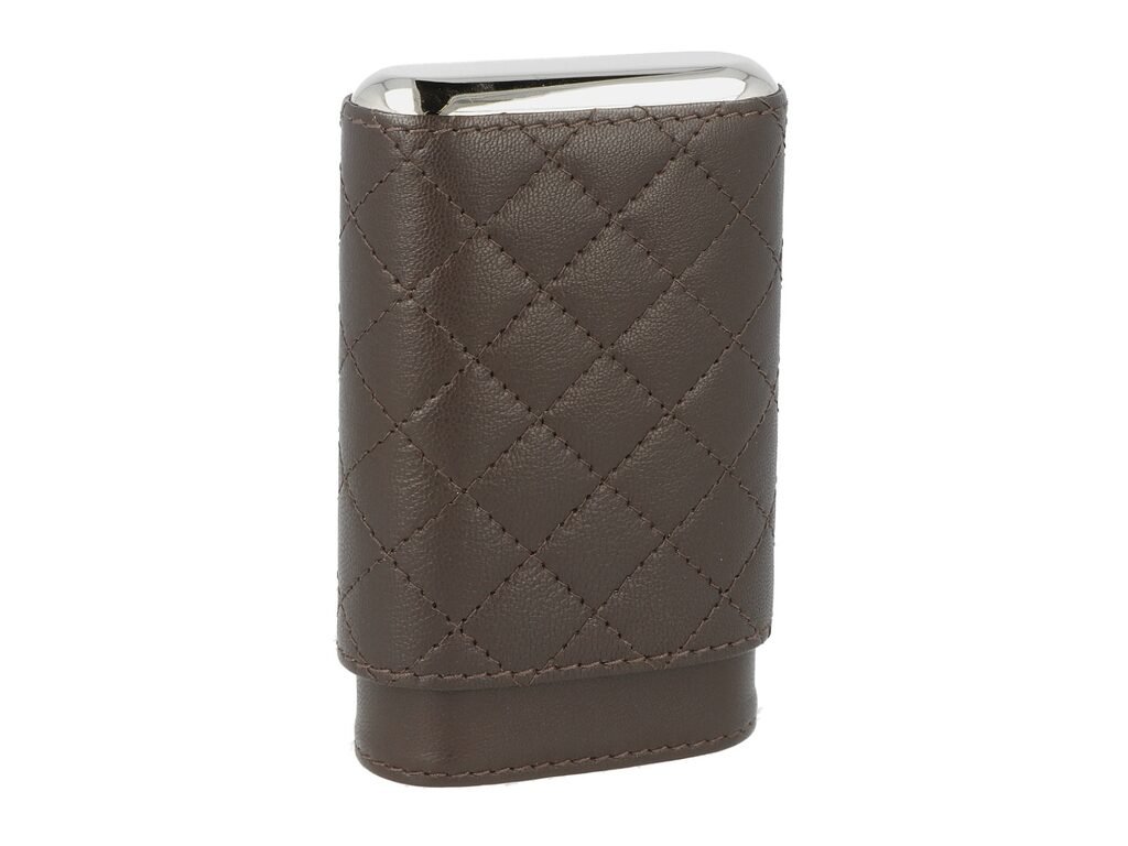 Etue - kožené pouzdro na tři doutníky Robusto/Corona. Pouzdro na doutníky Leather je vyrobené z kvalitní kůže ve hnědé barvě, kterou zdobí prošití. Horní a spodní část je kovová v lesklém chromovém provedení. Pouzdro je uvnitř vyložené cedrovým dřevem, které pomáhá uchovávat doutníky v dobré kondici. Vnitřní prostor pojme tři kusy doutníků velikosti Corona nebo Robusto. Kožené pouzdro na doutníky je dodávané dárkové krabičce.