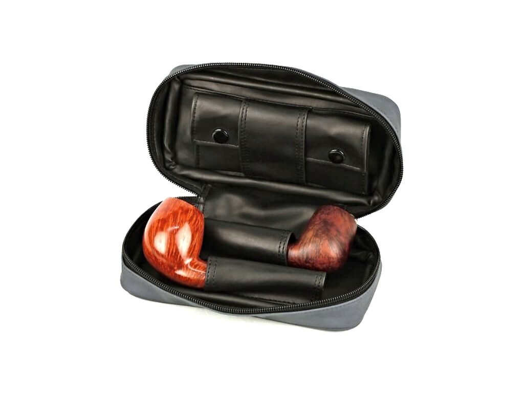 Pouzdro (Etue) na 2 dýmky se zipem a vnitřní kapsou na tabák. Pouzdro na dýmku je koženkové.