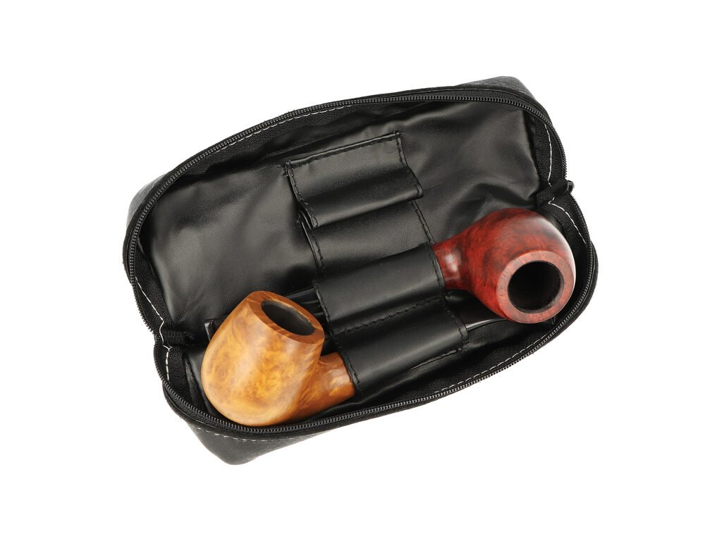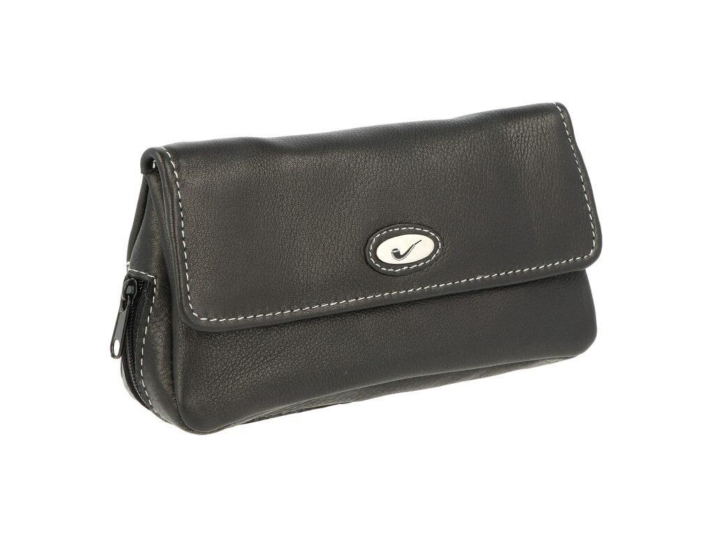 Kožené pouzdro na 2 dýmky se zipem Pipe Emblem. Kvalitně zpracované pouzdro na dýmky s jemně texturovaným povrchem z kůže je v černém polomatném provedení. Čelní strana je zdobená logem dýmky. Na spodní straně pouzdra najdeme prostor pro dvě dýmky, čističe a dusátko, který je uzavíratelný na zip.