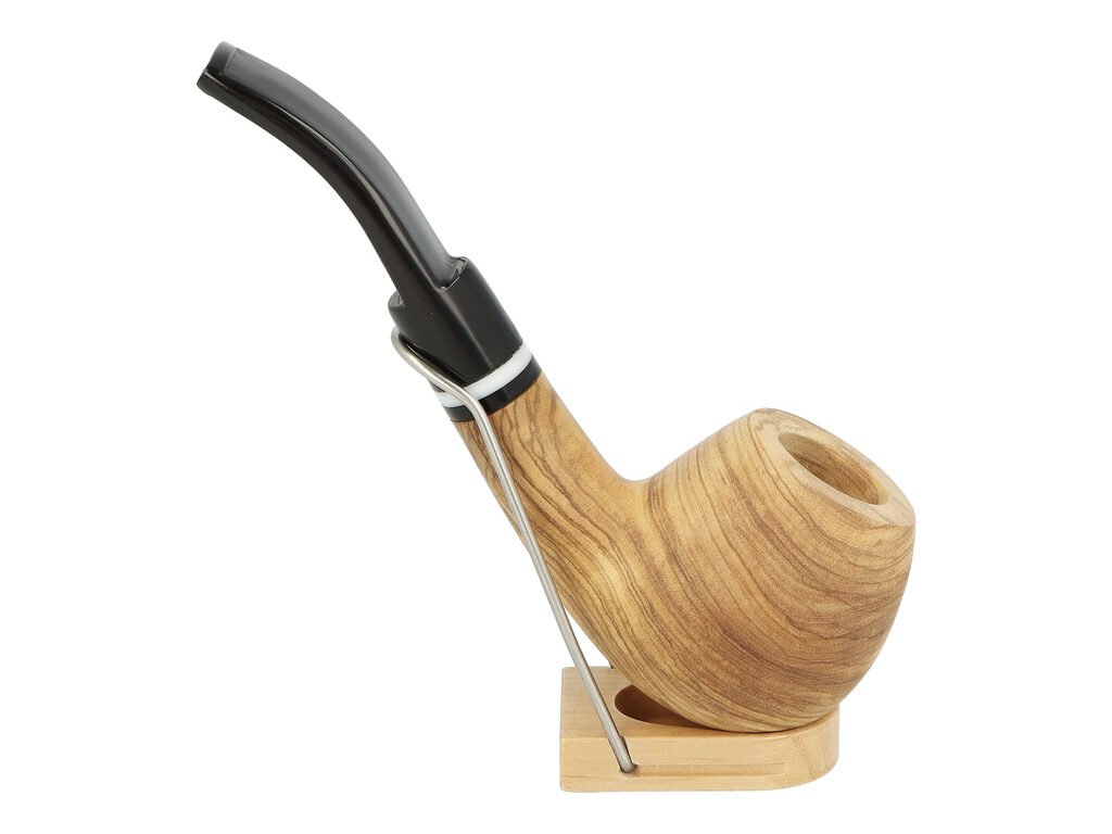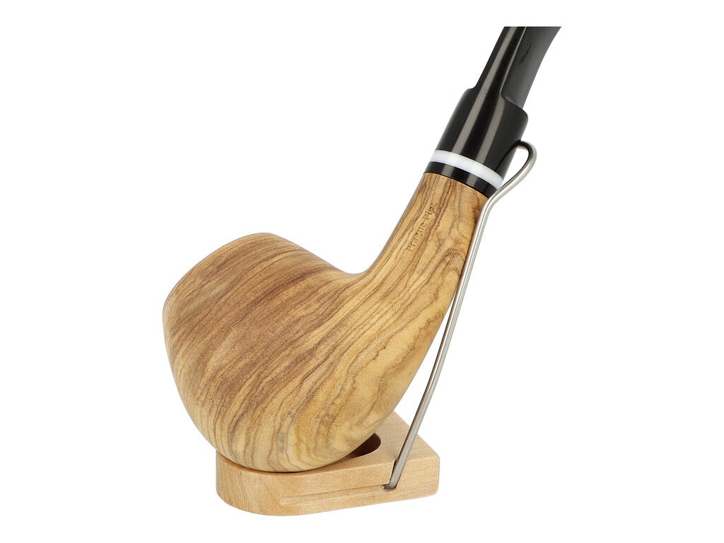 Kvalitní dýmka Prague Pipes Oliva O11 s filtrem. Prohnutá dýmka z olivového dřeva je precizně zpracovaná a vyrobená. Černý akrylový náustek je ve vysokém lesku, povrch hlavy dýmky je v matném provedení. Zobrazený stojánek není součástí balení dýmky.
