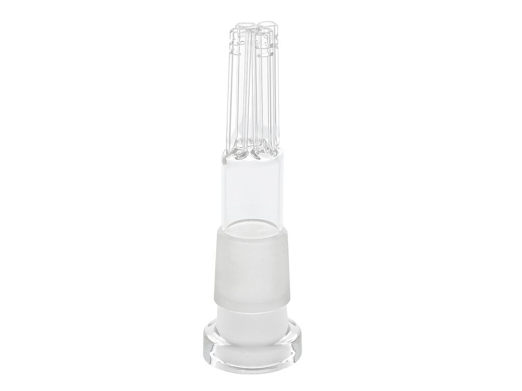 Náhradní skleněný chillum pro bongy s difuzérem a se zábrusem pro kotlík. Chillum Amsterdam je vybavený slits difuzérem se čtyřmi rameny, který již od začátku kouř rozdělí, zjemní a tím jej napomáhá ochlazovat. Kvalitně zpracovaný chillum je vyrobený z borosilikátového skla, které odolává žáru. Tento chillum je určený pro bongy se zábrusem 29,2 mm. Je možné do něj vložit všechny kotlíky nebo precoolery se zábrusem 18,8 mm.
