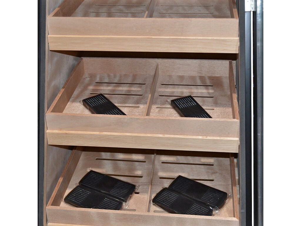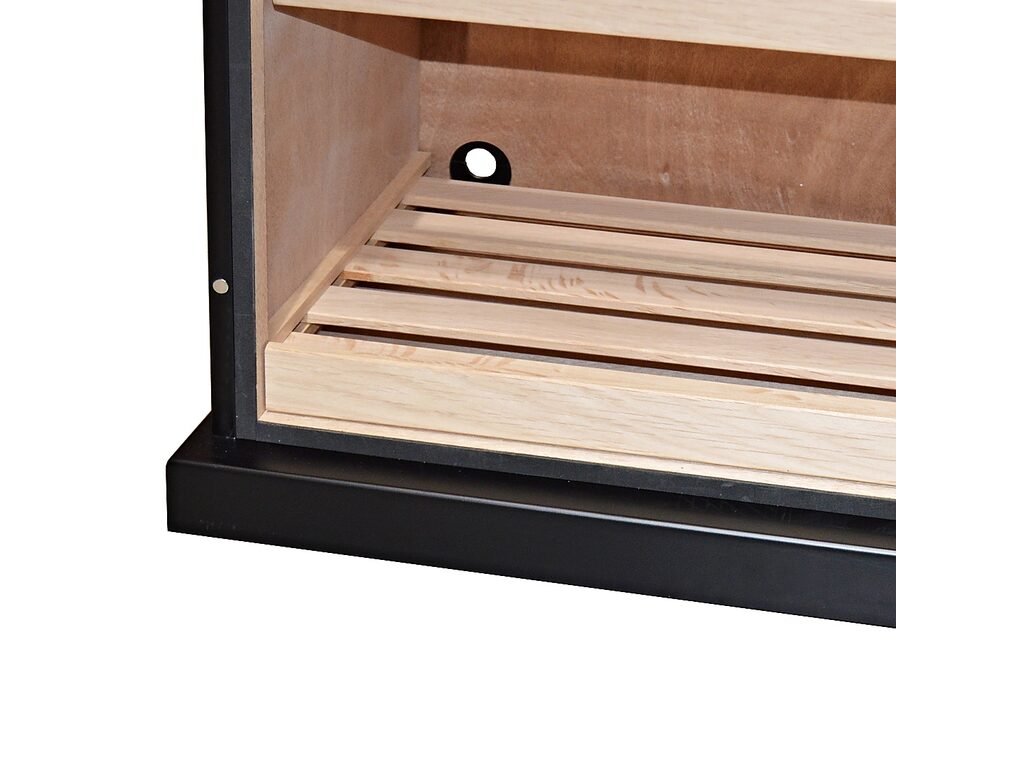 Spodní vnitřní část humidoru s průchodkou na napájecí kabel je vhodná pro instalaci elektrického automatického zvlhčovače Cigar Oasis Magna 3.0. nebo zvlhčovače Brebbia, který zajistí dostatečné udržení požadované vlhkosti v humidoru. Celý vnitřek humidoru je vyložený cedrovým dřevem, které prospívá skladování doutníků.