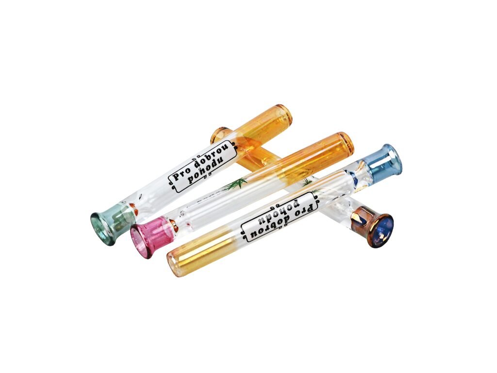 Skleněná šlukovka - skleněnka s obrázky, ruční výroba. Délka šlukovky je 7,8 cm.