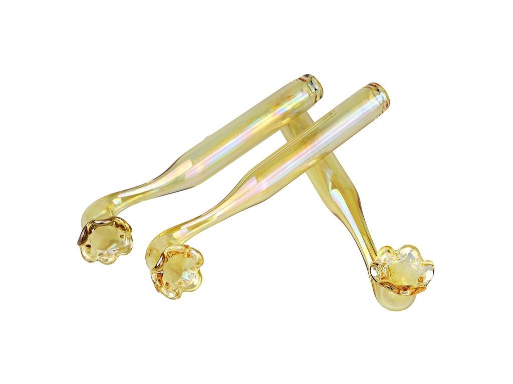 Skleněná šlukovka HM. Čirá prohnutá skleněnka s povrchem v perleťovém provedení. Šlukovka je vyráběna ručně v ČR. Délka 11 cm.