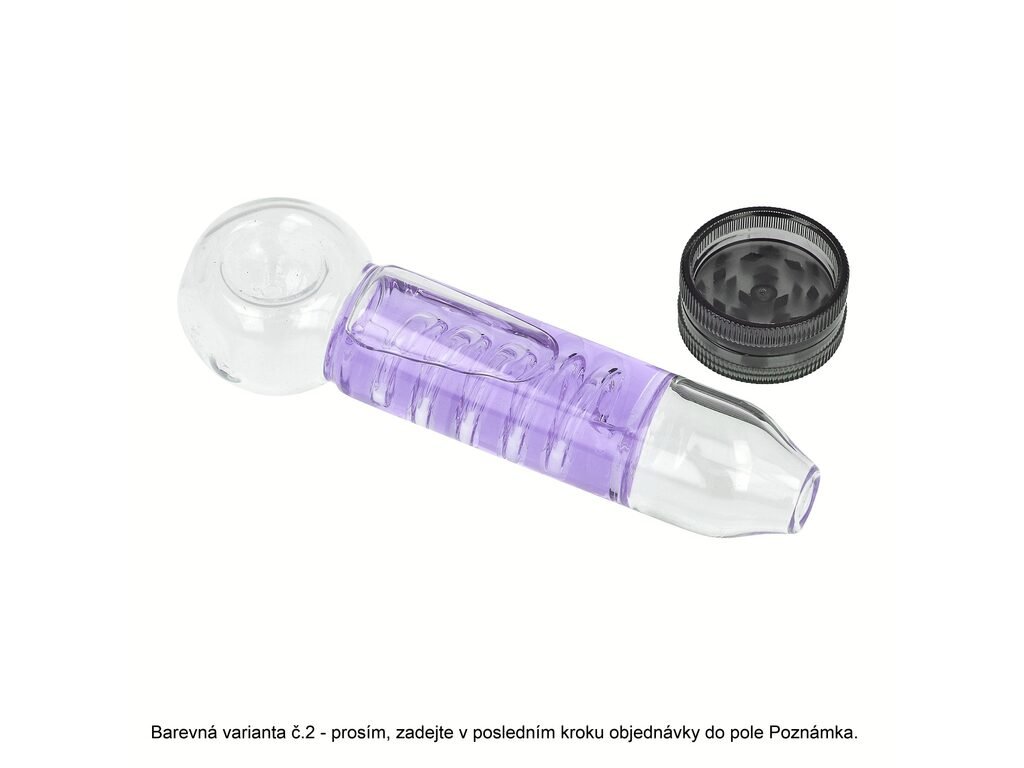 Cestovní sada skleněná šlukovka Spiral Colored a plastový drtič. V praktické sadě najdeme skleněnou šlukovku a malou drtičku bylin. Šlukovka je vyrobená ze žáruodolného skla tloušťky 2 mm. Vnitřek se spirálou je naplněný barevným tekutým gelem. Spirála slouží jako perkolace, kde se kouř ochlazuje. Kotel šlukovky má na boku otvor pro turbo. Převrácení šlukovky zamezuje zploštělé dno kotle. Menší plastový drtič s ostřím ve tvaru diamantu nadrtí Vaši směs bylin do požadované hrubosti. Díky plastovému pouzdru, které šlukovku ochrání proti poškození, si můžete vzít skleněnou dýmku sebou kamkoliv. Ideální jako dárek pro Vaše přátele. Sada je dodávaná v plastovém pouzdru. Cena je uvedena za 1 ks. Před odesláním objednávky uveďte číslo barevného provedení do poznámky.
