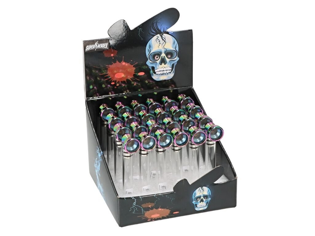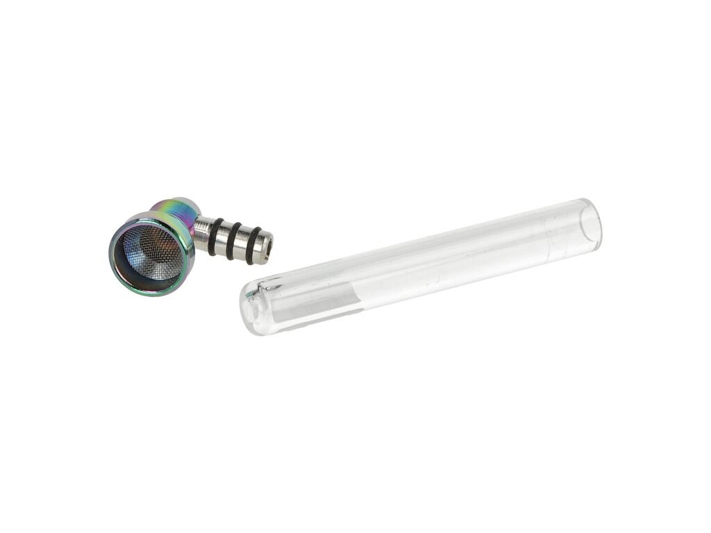 Transparentní skleněná šlukovka Super Heroes s kovovým kotlem a sítkem. Rovná silnostěnná skleněná dýmka je vyrobená z kvalitního borosilikátového tloušťky 2 mm. Kovový kotlík se sítkem má povrch v rainbow provedení. Pro snadné čistění lze kotlík ze šlukovky vyjmout. Díky plochému dnu kotle můžeme šlukovku opřít a zabránit jejímu poškození. Cena je uvedená za 1 ks.