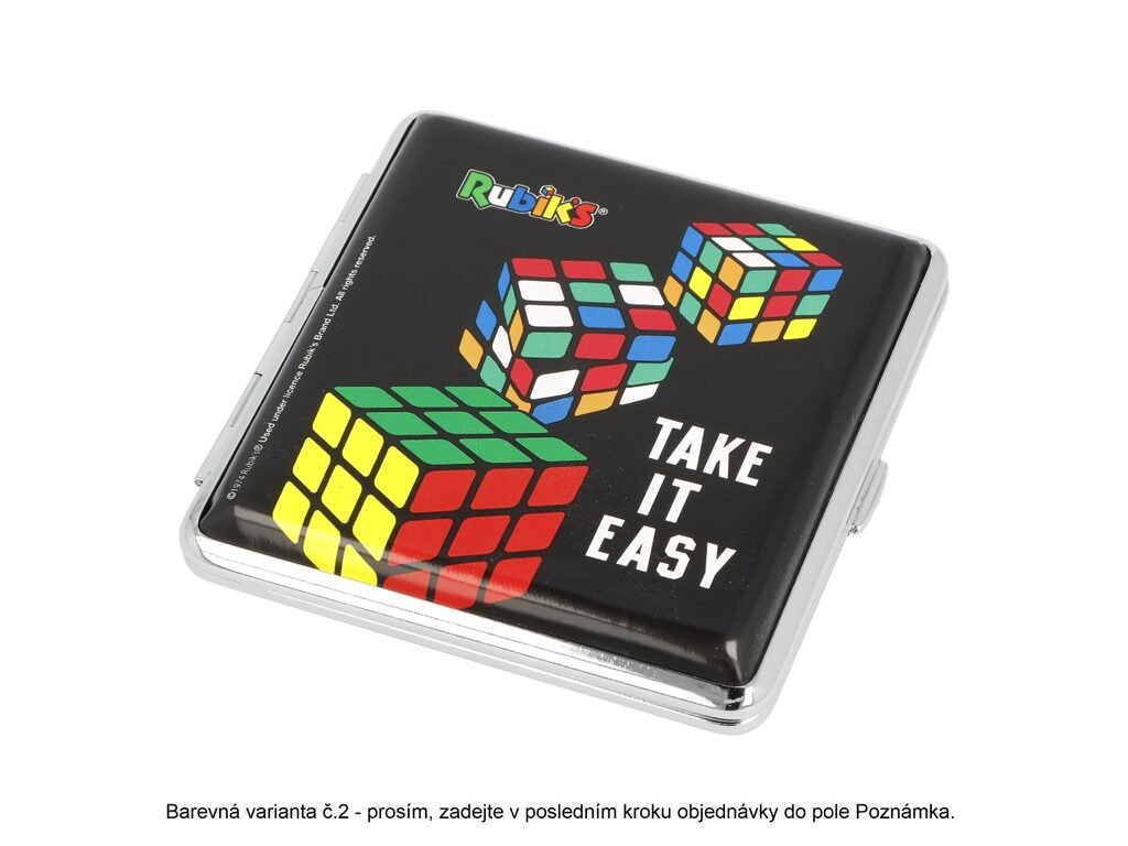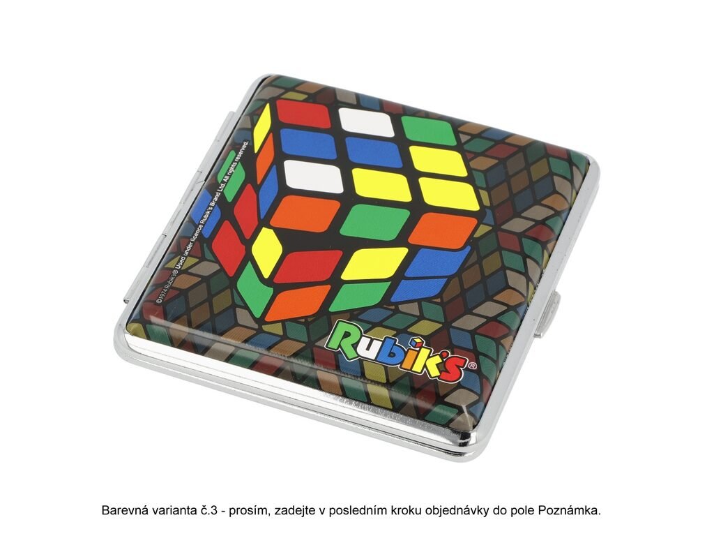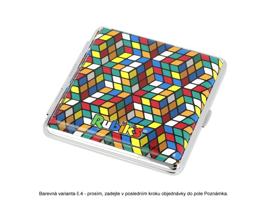 Tabatěrka na 20 ks cigaret klasické velikosti (King Size). Cigaretové pouzdro Colored s motivem Rubikovy kostky a chromovým lesklým rámečkem. Zadní a přední strana pouzdra jsou stejné. Cigarety jsou uvnitř tabatěrky zajištěny gumičkou. Cena je uvedena za 1 ks. Před odesláním objednávky uveďte číslo barevného provedení do poznámky.