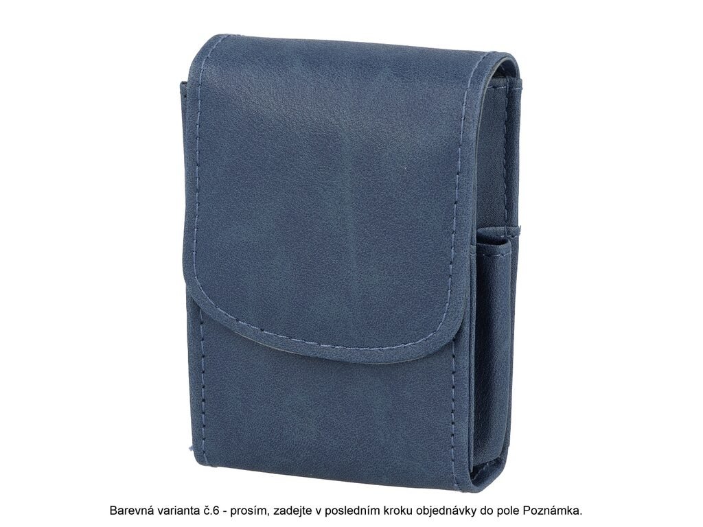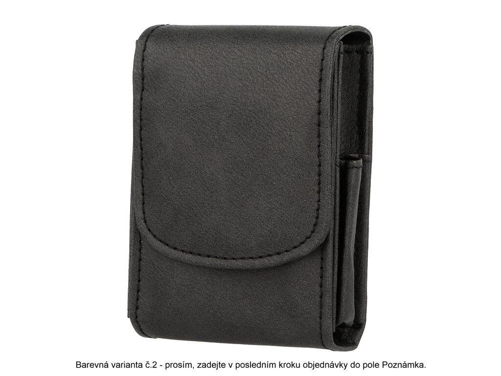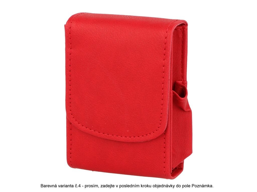 Univerzální koženkové pouzdro na cigarety s kapsičkou na zapalovač. Pouzdro na celou krabičku cigaret 80 mm nebo 100 mm v různých barvách je vyrobené z kvalitní koženky v matném provedení. Vypadnutí krabičky je zajištěno zapínáním pouzdra na magnet. Díky dvěma magnetům je cigaretové pouzdro vhodné pro obě velikosti krabiček - cigarety běžného typu King Size nebo dlouhé stovkové cigarety. Boční strana pouzdra nabízí uschování zapalovače v praktické kapsičce. Pouzdro na cigarety je dodáváno v plastovém sáčku. Cena je uvedena za 1 ks. Před odesláním objednávky uveďte číslo barevného provedení do poznámky.