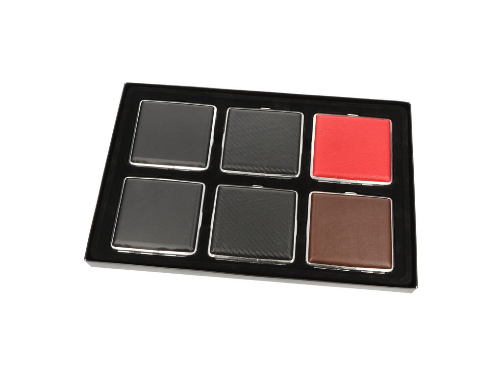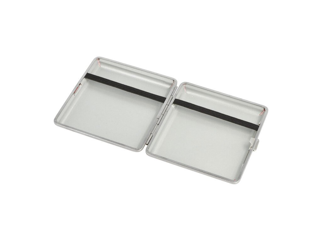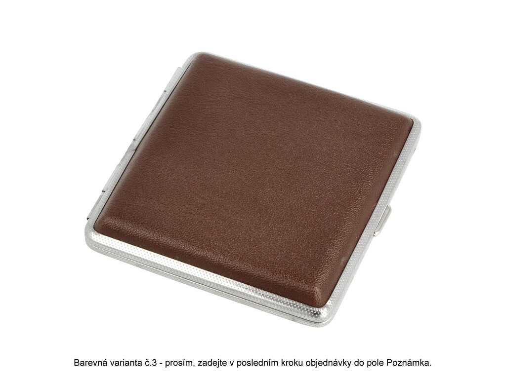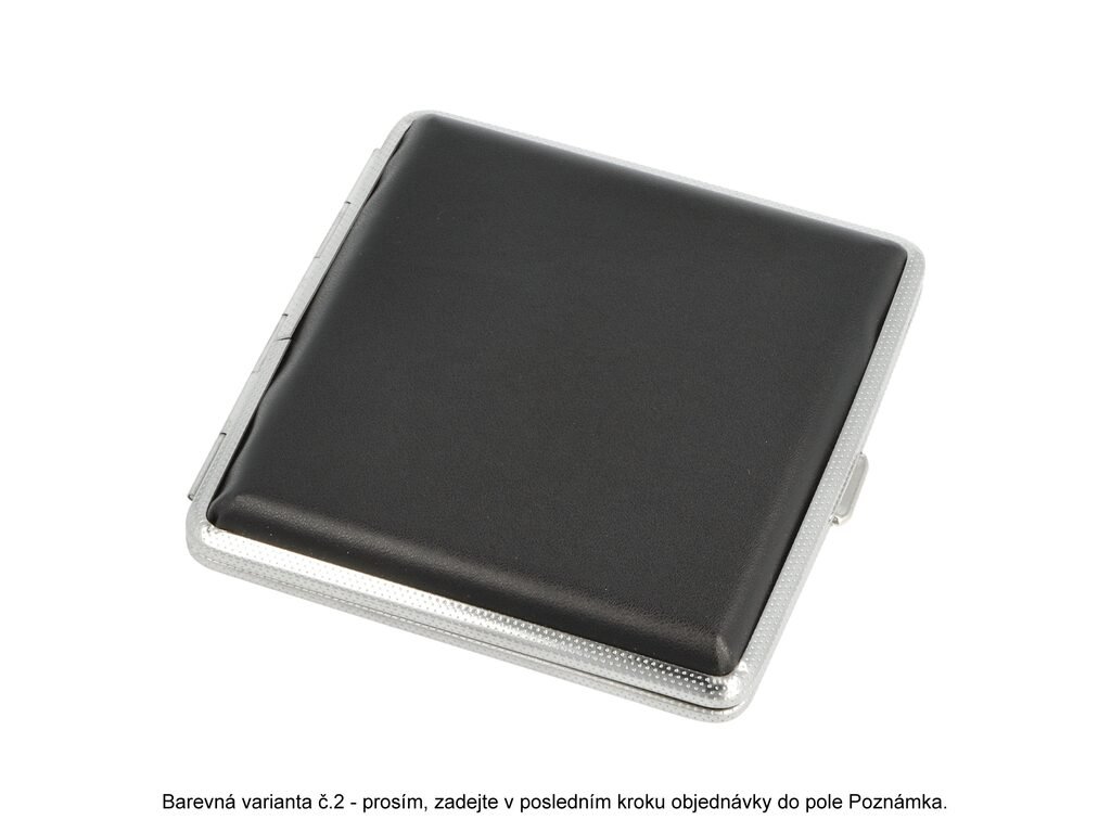 Přední a zadní strana pouzdra je stejná. Cigarety jsou uvnitř tabatěrky zajištěny gumičkou. Před odesláním objednávky uveďte číslo barevného provedení do poznámky. Cena je uvedená za 1 ks.