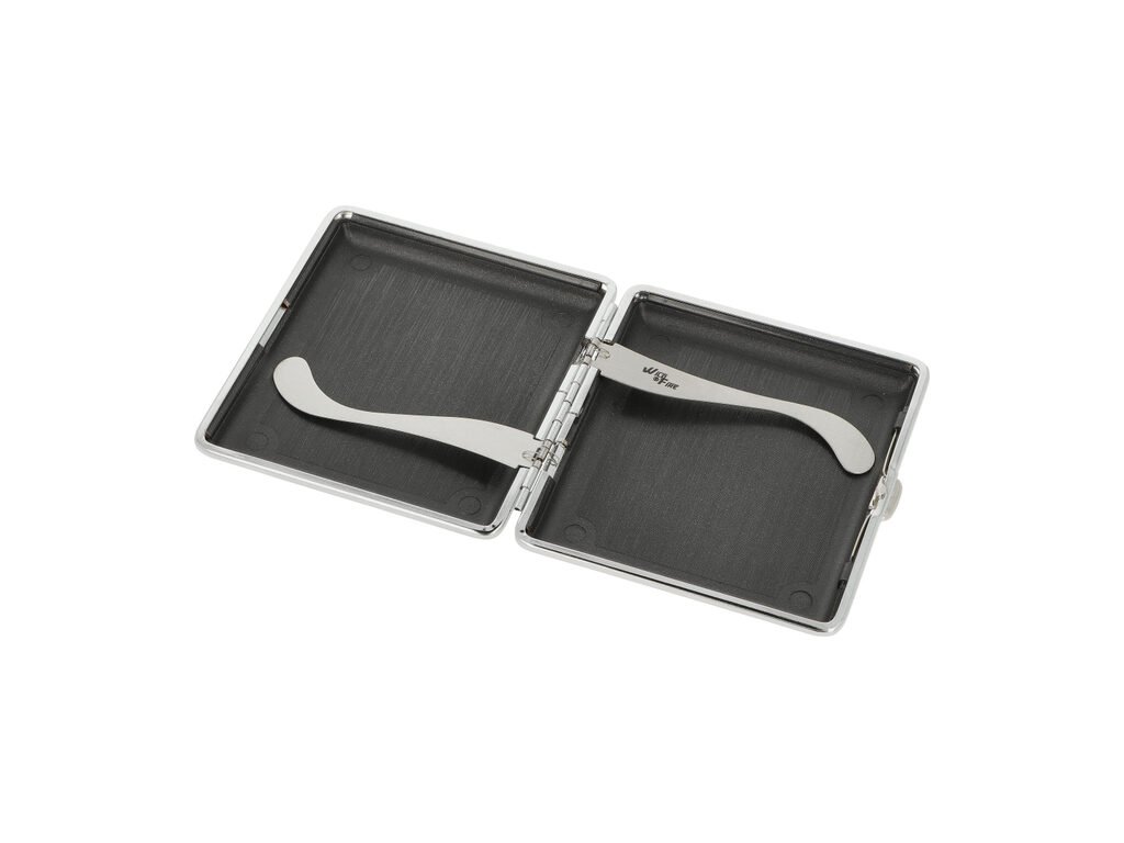 Tabatěrka na 20 ks cigaret klasické velikosti (King Size). Kovové cigaretové pouzdro Wildfire Metal Strips má drážkovaný povrch ve stříbrné barvě. Přední a zadní strana pouzdra je stejná. Cigarety jsou uvnitř plastového prostoru tabatěrky zajištěny plíškem s pružinou. Pouzdro je dodávané v papírové krabičce.