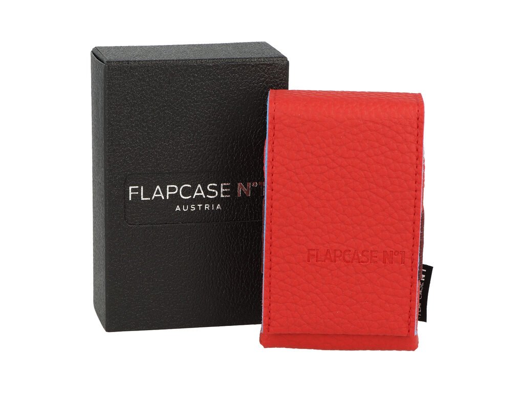 Elegantní kožené pouzdro na cigarety s gumou na zapalovač. Praktické pouzdro Flapcase No.1 na celou krabičku cigaret klasické velikosti King Size (80 mm) je vyrobené z kvalitní kůže. Barevný povrch v červené barvě má jemnou texturu. Vypadnutí krabičky je zajištěno zapínáním pouzdra na magnet. Po celém obvodu pouzdra je guma, díky které můžeme uchytit zapalovač, který je nedílnou součástí kuřáka cigaret. Pouzdro je dodávané v dárkové krabičce a je ručně vyrobené v Rakousku z kvalitních materiálů.