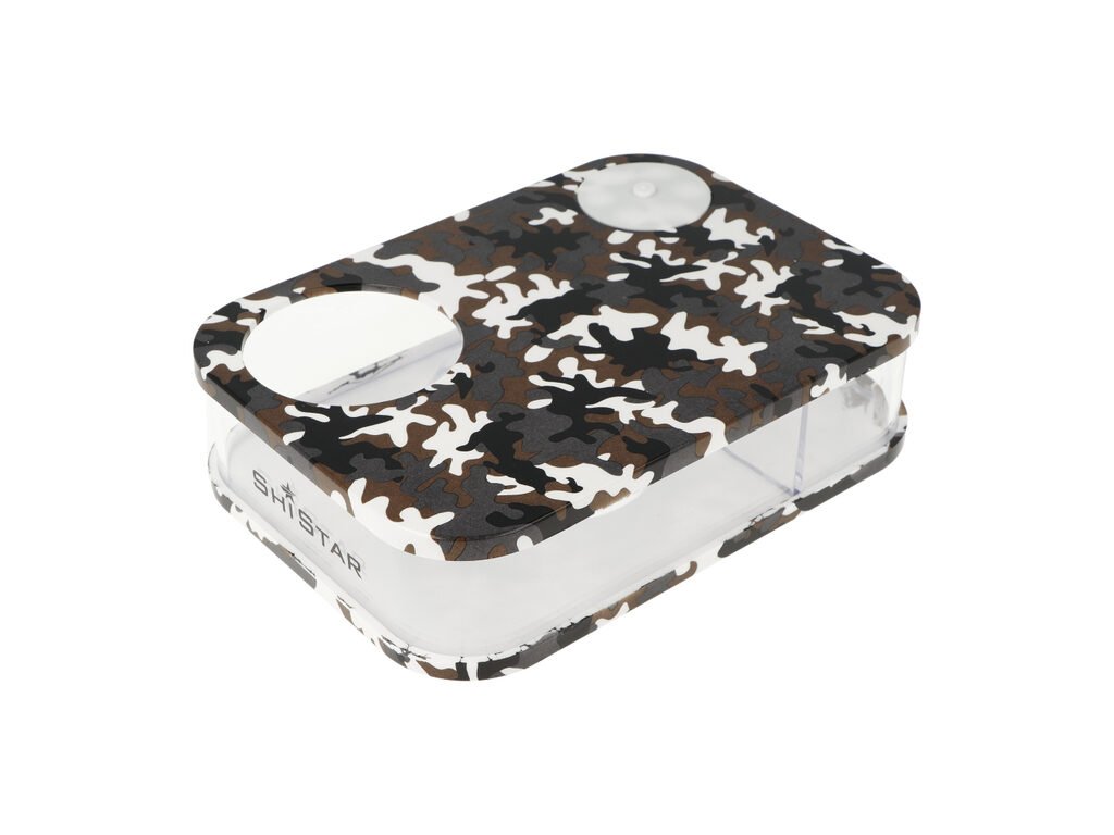 Kompaktní, jednošlauchová skládací dýmka má tělo a vázu v jednom kusu a to v podobě ploché základny, která je vyrobená z tvrzeného plastu o tloušťce 3 mm. Povrch je v kamuflážním lesklém provedení. Dýmka Shistar Outdoor LED je dodávaná s jedním silikonovým Soft Touch šlauchem, který je ukončený hliníkovým náustkem a konektorem pro připojení.