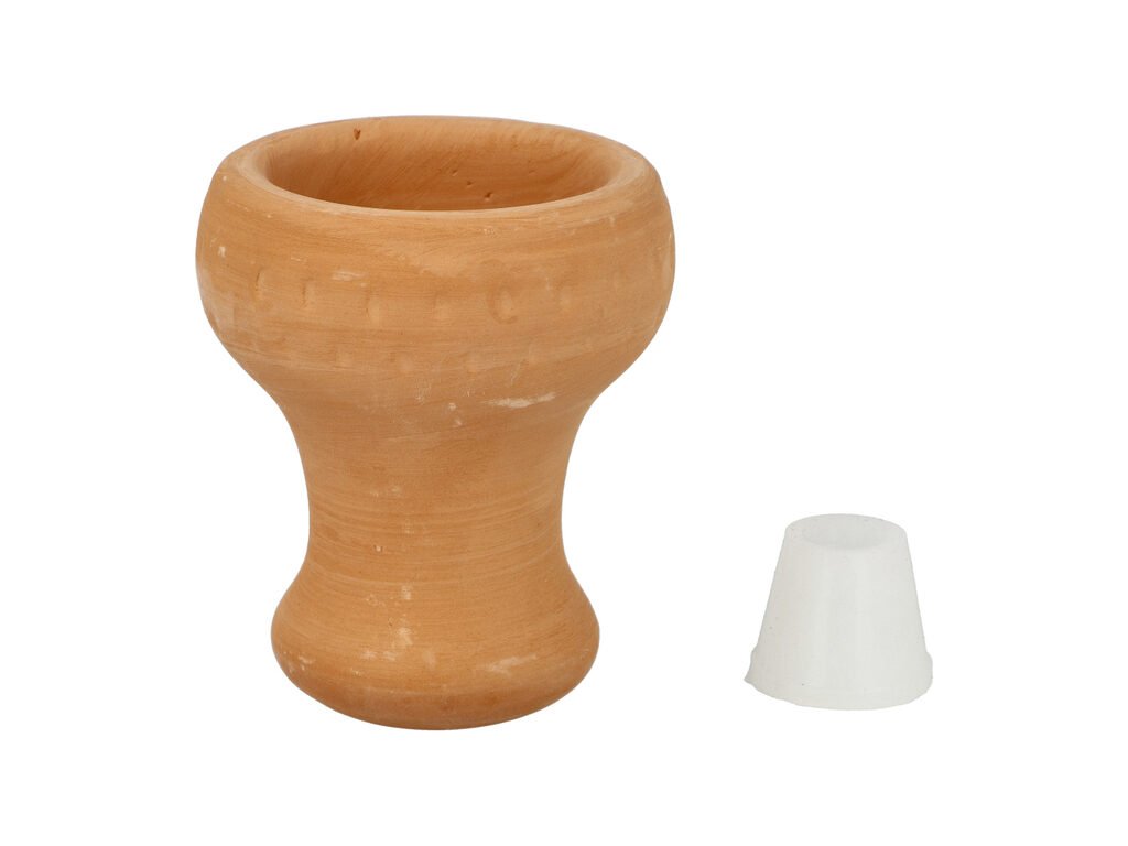 V obsahu balení najdete: tělo dýmky, skleněnou vázu, silikonovou hadici s hliníkovým náustkem a konektorem pro připojení, pružinku na hadici, keramickou korunku, potřebné těsnění, talířek a kleště na uhlíky.