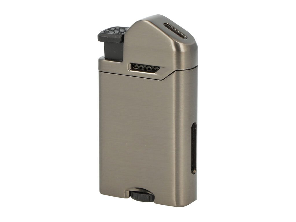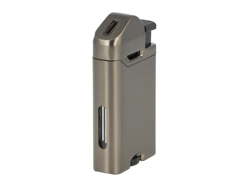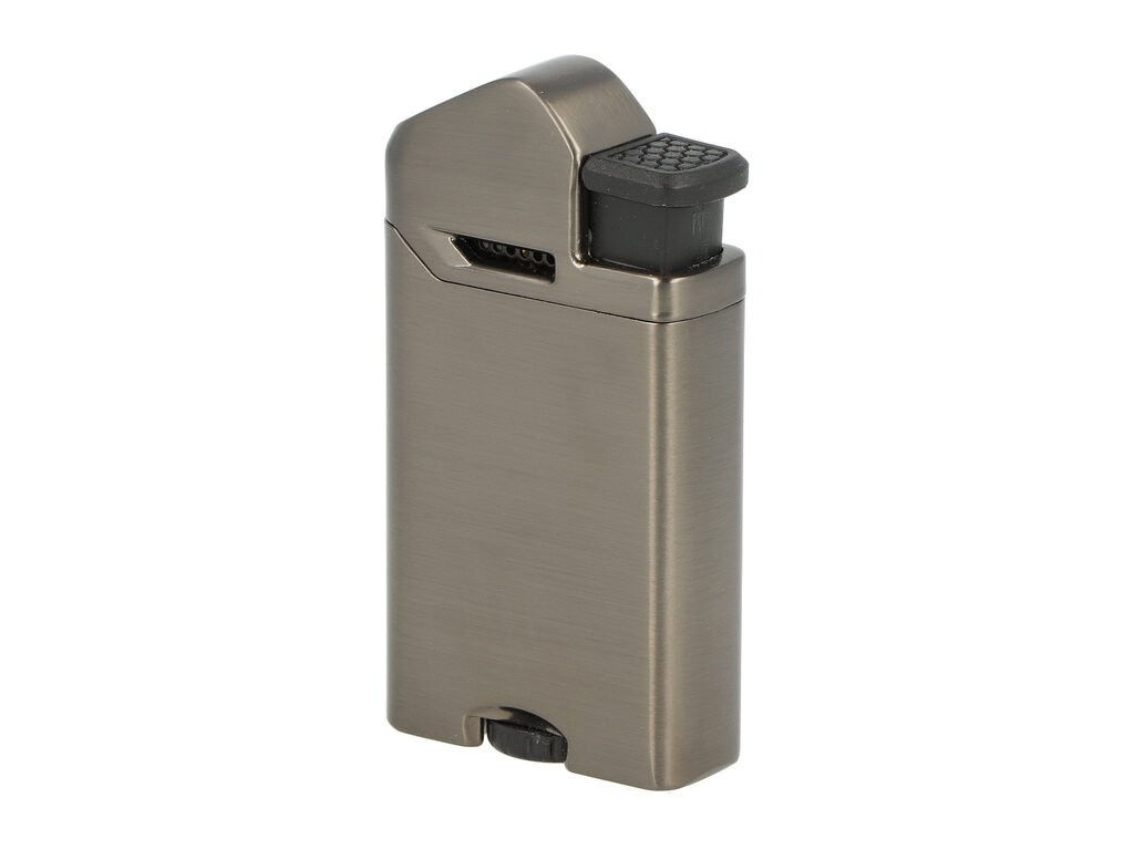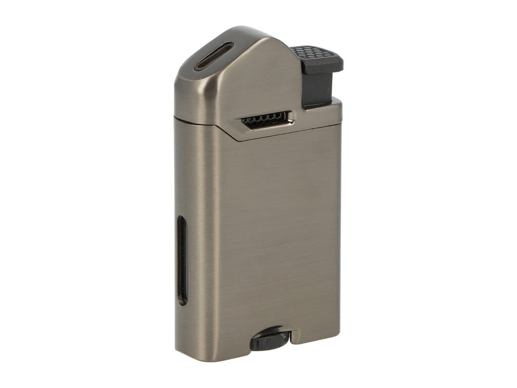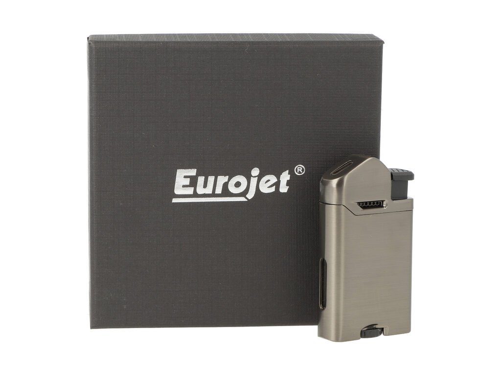 Tryskový zapalovač Eurojet Single s plochým plamenem. Kovový turbo zapalovač má povrch v pololesklém gunmetalovém provedení. Při stisku horního tlačítka dojde k zapálení jedné trysky, která vytvoří plochý plamen. Okénko na boku nám umožňuje kontrolovat hladinu plynu v zapalovači. Ve spodní části zapalovače najdeme plnící ventil plynu a ovládání intenzity plamene. Zapalovač je dodáván v originální dárkové krabičce.