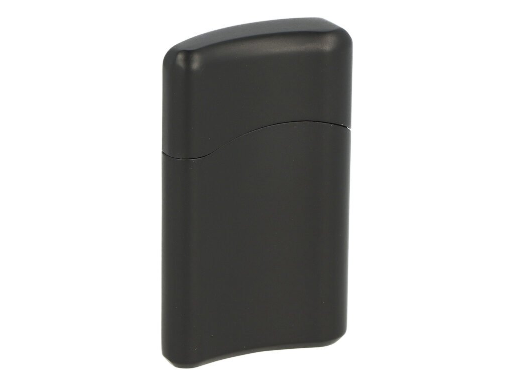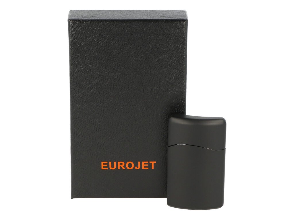 Plynový zapalovač Eurojet Soft Matte. Kovový zapalovač prohnutého tvaru má povrch v černé matné barvě. Po odklopení horního krytu a stisku tlačítka dojde k zapálení klasické plamene. Ve spodní části zapalovače najdeme plnící ventil plynu a ovládání intenzity plamene. Zapalovač je dodáván v originální dárkové krabičce.