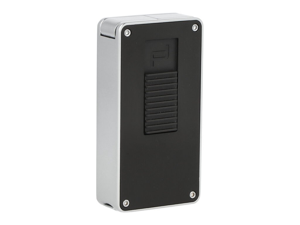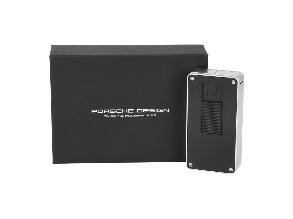 Exklusivitu zapalovači dává nejen logo Porsche Design na obou stranách, ale především precizní výroba, kvalitně zpracovaný sametový povrch a neotřelá barevná kombinace spolu s ozdobnými stříbrnými imbusy. Na přední straně najdeme žebrované tlačítko k zapálení plamene, zadní strana je vkusně doplněná okénkem s chromovou mřížkou.