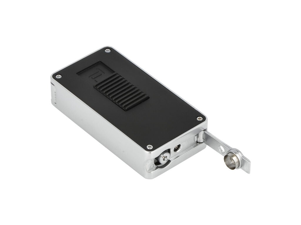 Při posunutí tlačítka směrem nahoru se otevře kryt trysek, vysune se hořák s tryskami a dojde k jejich zapálení. Na spodní straně zapalovače najdeme výklopný vyštípávač na doutníky, nastavení intenzity plamene a plnící ventil plynu. Zapalovač Porsche Design je dodáván v originální dárkové krabičce.