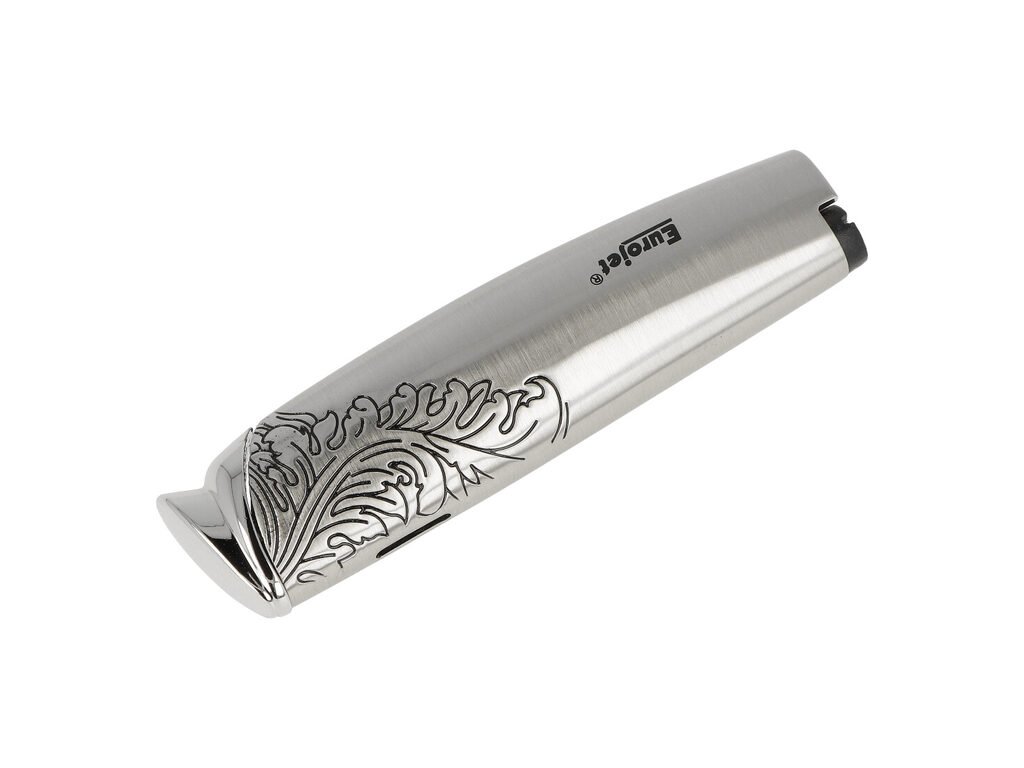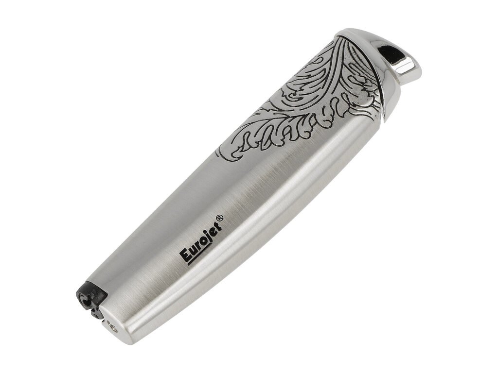 Elegantní zapalovač Eurojet Rena s jednou tryskou. Kovový turbo zapalovač v chromovém odstínu má povrch zdobený gravírovaným ornamentem. Po stisknutí tlačítka dojde k odklopení horního krytu a k zapálení trysky, která vytvoří plamen k zapálení cigarety. Ve spodní části zapalovače najdeme plnící ventil plynu a ovládání intenzity plamene. Zapalovač vhodný jako dárek pro ženu je dodáván v originální dárkové krabičce.